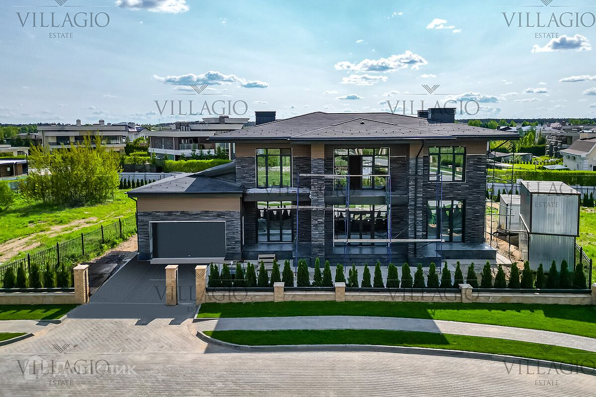 Двухэтажный современный загородный дом площадью 425.9 м², а с учетом террас, крылец и гаража 484.3 м². Дом расположен в коттеджном поселке «Миллениум Парк» на участке 13.61соток. Здесь вы сможете продумать расположение комнат так, как будет удобно только вам и воплотить в жизнь собственный дизайн. На первом этаже располагается холл, гардероб, кухня-столовая, гостиная с выходом на большую террасу и санузел. Также здесь можно расположить гостевую спальню, постирочную и котельную. На втором этаже три просторные мастер-спальни с гардеробными, а также две спальни с личными террасами. В ближайшее время будет полностью оборудована котельная. Важно отметить, что крыша дома выполнена в виде скатной конструкции, что открывает бесконечные возможности для создания интерьера с высокими потолками или разноуровневой мансардой. В доме предусмотрен гараж на две машины с мансардным помещением, которое может служить дополнительной комнатой или арт-студией. Этот дом построен с использованием современных технологий и надежных материалов. Фундамент выполнен из железобетонных блоков и гидроизолирован для долговечности. Наружные стены изготовлены из керамического многопустотного блока — прочного теплоизолирующего материала. Фасад этого дома выполнен с использованием клинкерной плитки и дерева, которое подверглось термообработке для долговечности. Для того, чтобы подчеркнуть уникальность дома даже ночью, здесь предусмотрена подсветка фасада.