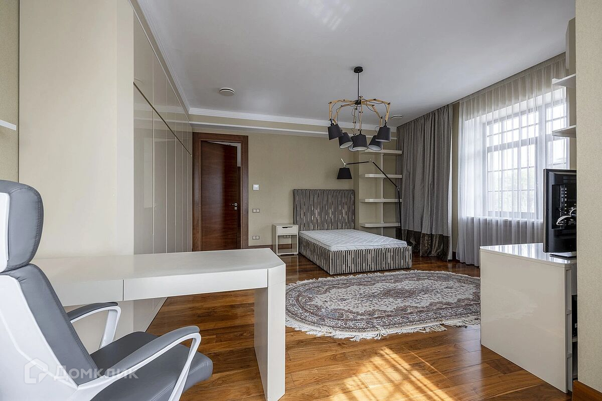 Особняк расположен в камерной части лучшего квартала Millennium Park’а. От взглядов посторонних дом укрыт высокой и густой стеной из деревьев. Окружение идеально для комфортного летнего отдыха на природе. Всего в двух минутах прогулки расположен «венецианский» канал с живописной прогулочной зоной. До уникального парка «Лабиринт» с озером и лабиринтами для детей и взрослых — 8 минут.На первом этаже расположена роскошная гостиная с камином и витражными окнами высотой в два этажа. Столовая выходит на крытую террасу, выполненную из натурального дерева. Зимний сад, окружённый панорамными окнами с трёх сторон, выходит на открытую террасу. В кабинете с отделкой из ценных пород дерева расположена рабочая зона, окружённая с двух сторон большими окнами. Гостевая спальня расположена в уединённой части.Спа-зона из сауны и комнаты отдыха с мини-кухней занимает отдельную часть первого этажа.На полуторном этаже расположен комфортный и просторный кинотеатр для отдыха всей семьи.На втором этаже — три спальни. Мастер-спальня с собственной ванной и гардеробной. Две детские спальни, расположенные рядом с ванной комнатой. Дополнительная спальня с мансардными окнами и душевой.В отдельной, обособленной от остальных комнат, части дома обустроены квартира для персонала, комната водителя и пункт видеонаблюдения.Особняк окружён ухоженным и красивым садом, в сердце которого создана лаунж-зона. Территория находится под видеонаблюдением. В ближайшем окружении резиденции много приватного пространства. Дом окружён соседями только с двух сторон, расположен на просторном участке площадью 23 сотки.
