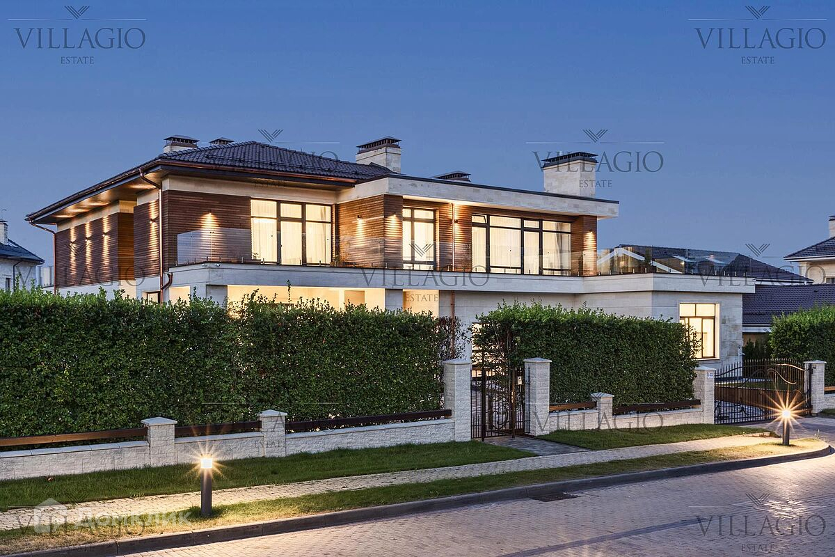 Эксклюзивное предложение Villagio Realty. Особняк с отличным расположением в посёлке. Всего 3 минуты — и вы у прохлады водного канала. Чтобы дойти до парка с озером «Лабиринт» вам понадобится всего 6 минут. Дизайнерский ремонт. В отделке — натуральный камень, ценные породы дерева, мрамор. Бытовая техника и мебель от одних из лучших европейских премиальных брендов. Для отдыха в кругу семьи и друзей создан бассейн с сауной, гостиная с камином и выходом на летнюю террасу. Приватная зона представлена шестью спальнями, пять из которых со своими ванными и гардеробными. Все спальни второго этажа выходят на террасы. Из главной спальни второго этажа, окружённой террасой с двух сторон, открывается потрясающий панорамный вид на восход солнца. На первом этаже расположен кабинет со своим выходом на террасу и панорамным видом на уютный двор. Для вашего удобства, гараж на два авто и комната для персонала расположены в отдельной зоне дома. На участке площадью 23 сотки выполнен ландшафтный дизайн, много свободного места, благодаря грамотному расположению дома. Периметр украшает зелёная стена из кустарников, цветущих летом.