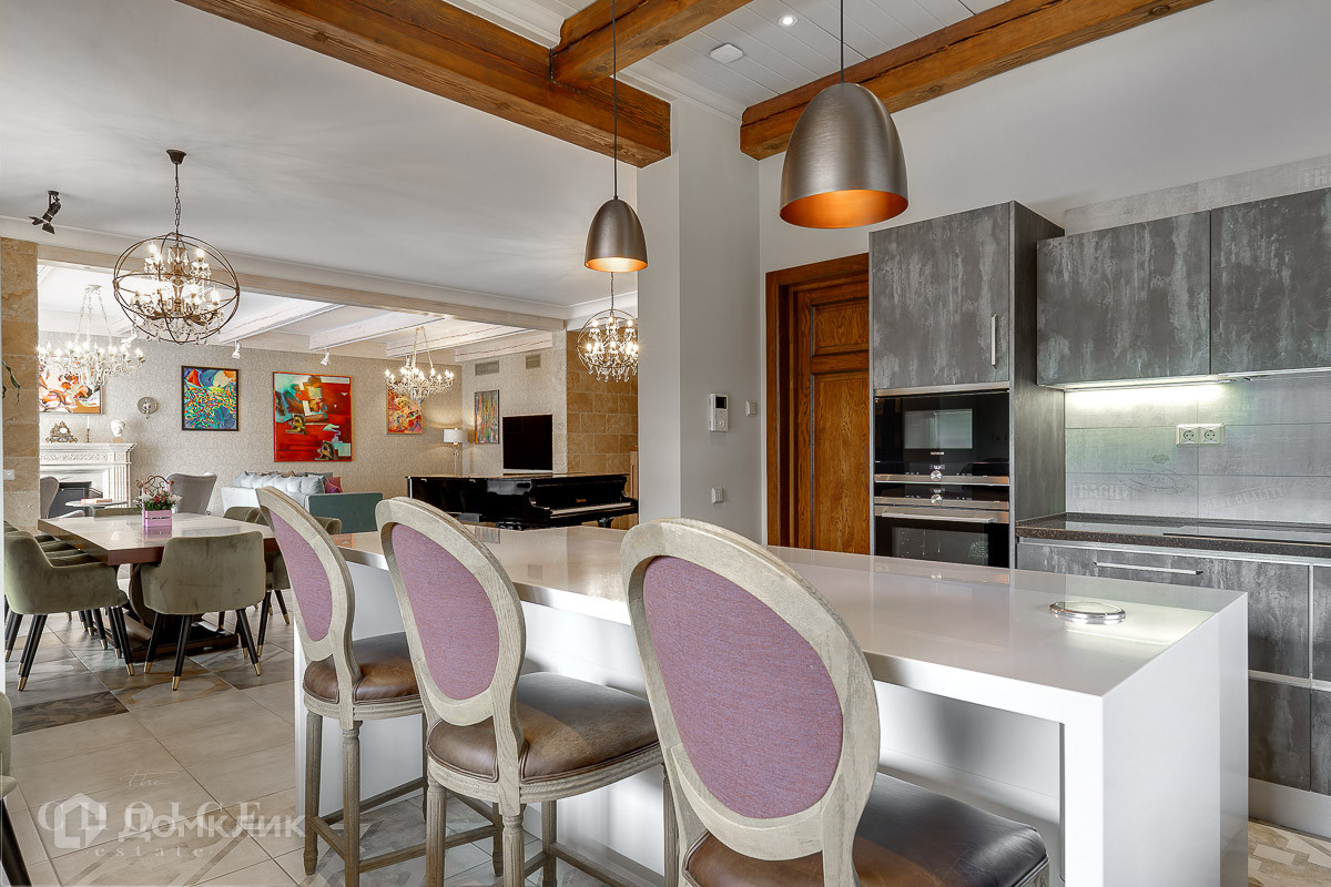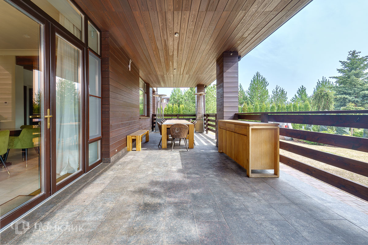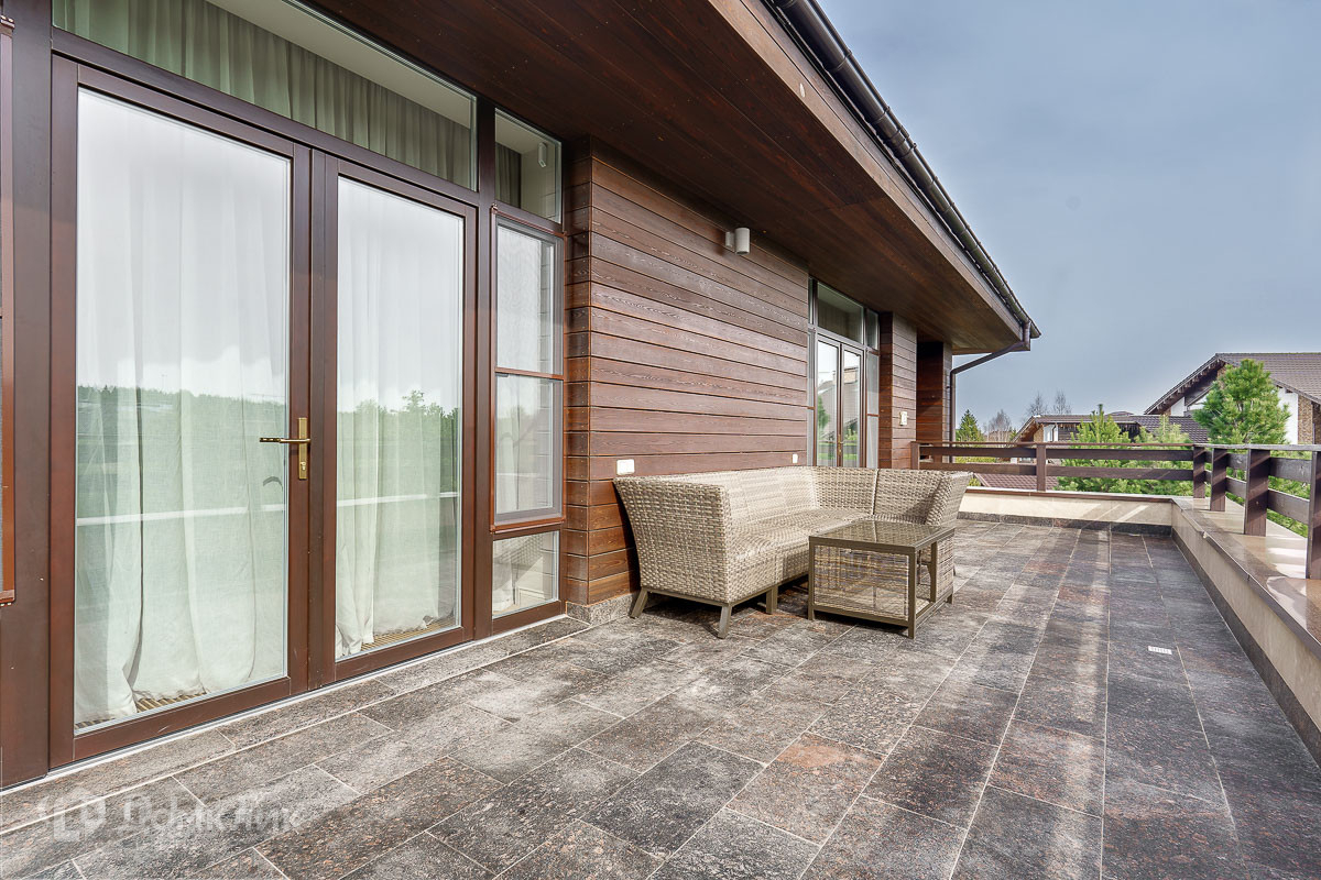 Дом построен по авторскому проекту в приватной части поселка. На участке выполнен дорогостоящий ландшафтный дизайн с автополивом, по периметру высажено боле 300 крупномерных туй, а на самом участке растут голландские кедры и много других растений привезенных из Европы. Фасад дома выполнен из лиственницы, травертина и сланца. Внутренняя отделка, также, выполнена из дорогих натуральных материалов - дубовый паркет, травертин, мрамор. В доме есть приточно-вытяжная вентиляция с кондиционированием. Планировкой предусмотрено наличие 4 полноценные спальни с санузлами и гардеробными, а также, два кабинета и зона спа с сауной и джакузи. Из каждой комнаты открывается потрясающий вид на участок. Отдельного внимания заслуживает домашний кинотеатр с оборудованием Sony 4K, B&W, Arthem, Zappiti и удобными итальянскими диваном и креслами-трансформерами. Дом полностью обставлен мебелью европейских брендов, декорирован предметами искусства и картинами художников русского авангарда. Отдельно в доме расположена полностью автономная квартира персонала с постирочной. В доме есть гараж на два авто, а также, навес на 2 м/м и парковочное пространство, где легко может разместиться еще 10 и более автомобилей.