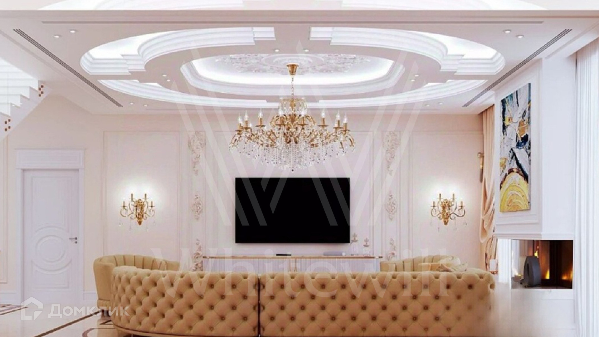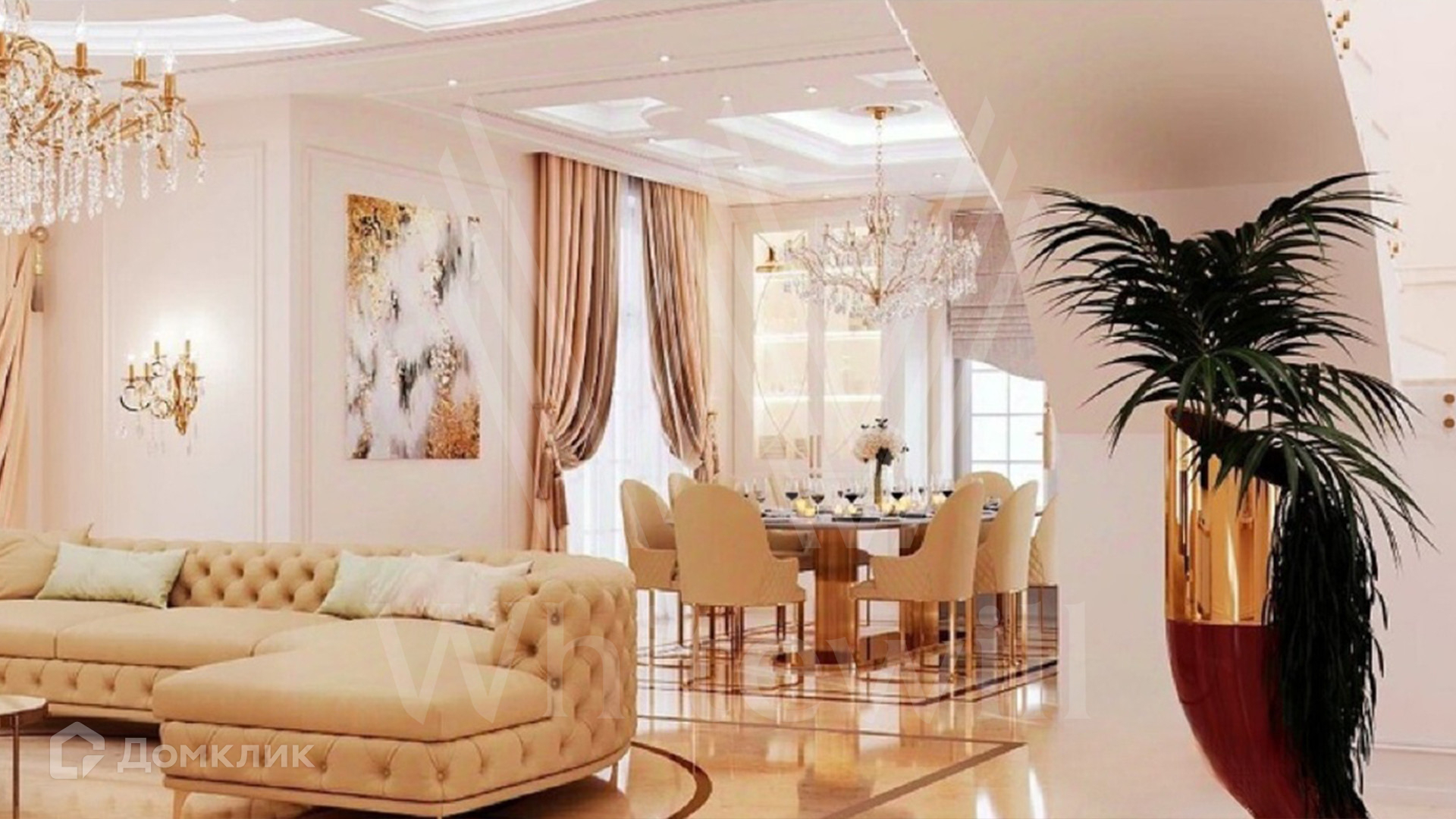 ID 12 479. Millennium Park. Загородная резиденция площадью 420 м² расположена на полевом участке 18 соток с ландшафтным дизайном. Симметричный фасад выполнен в неоклассическом стиле — дом облицован декоративным кирпичом и украшен колоннами. В интерьере выполнена отделка whitebox. Из парадной гостиной можно попасть в кухню и на террасу, также на первом этаже спланирована гостевая спальня. На втором этаже 3 спальни хозяев дома. На участке расположен отдельно стоящий гараж площадью 150 м² с квартирой для персонала и SPA-комплекс 330 м² с бассейном, сауной, кинотеатром и винным погребом.