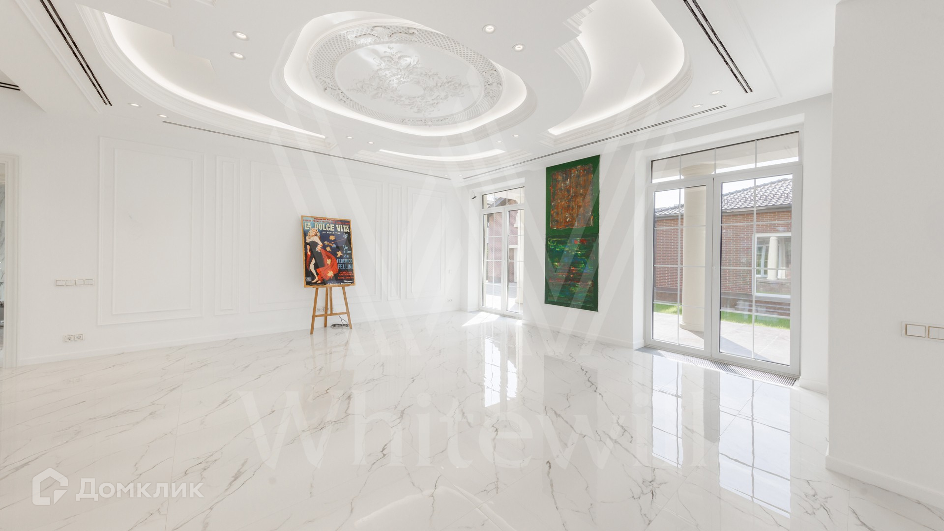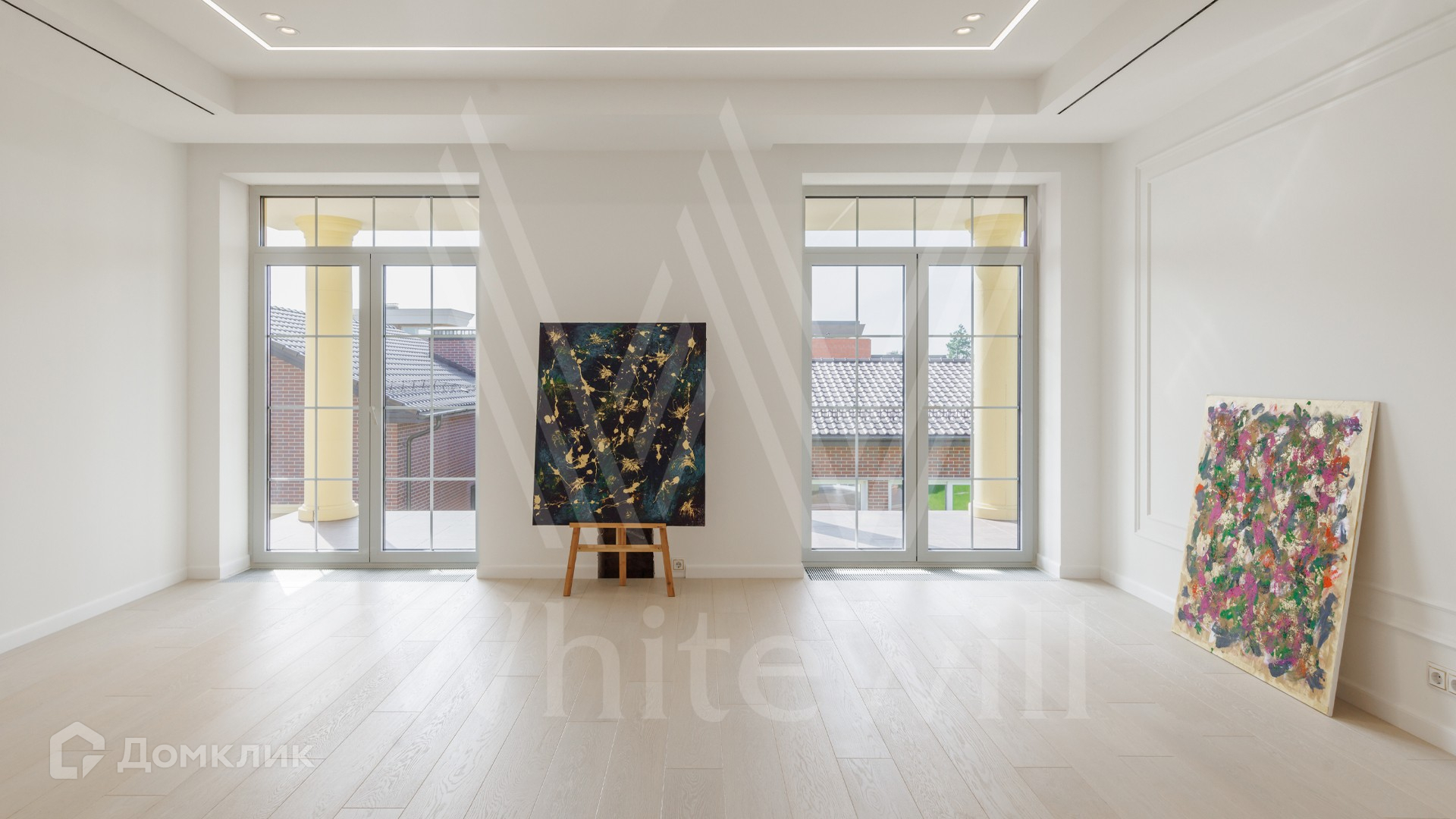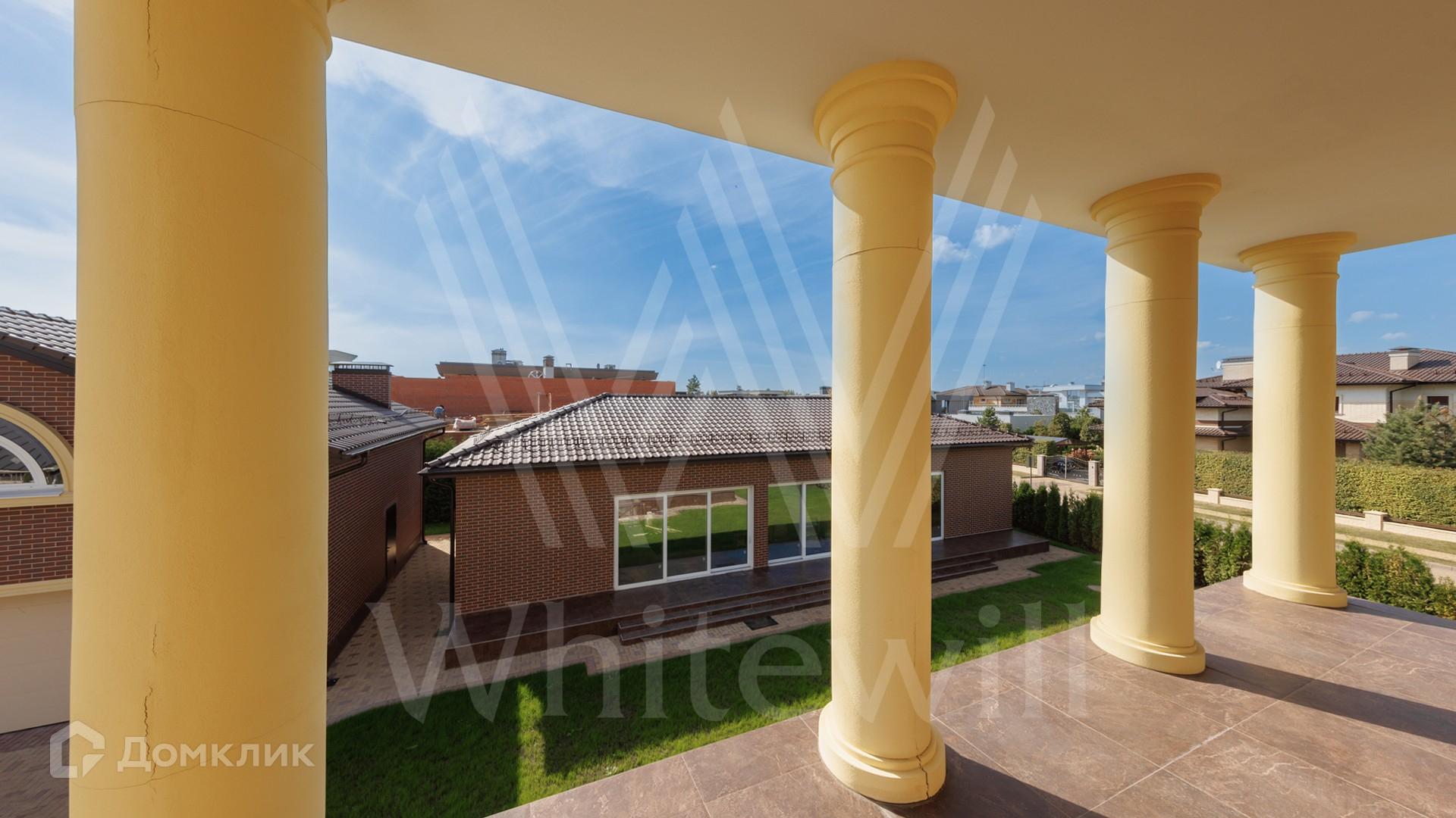 ID 12 479. Millennium Park. Загородная резиденция площадью 420 м² расположена на полевом участке 18 соток с ландшафтным дизайном. Симметричный фасад выполнен в неоклассическом стиле — дом облицован декоративным кирпичом и украшен колоннами. В интерьере выполнена отделка whitebox. Из парадной гостиной можно попасть в кухню и на террасу, также на первом этаже спланирована гостевая спальня. На втором этаже 3 спальни хозяев дома. На участке расположен отдельно стоящий гараж площадью 150 м² с квартирой для персонала и SPA-комплекс 330 м² с бассейном, сауной, кинотеатром и винным погребом.