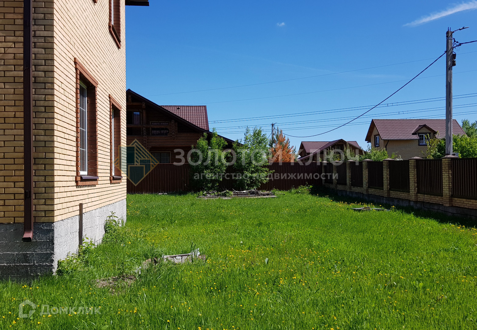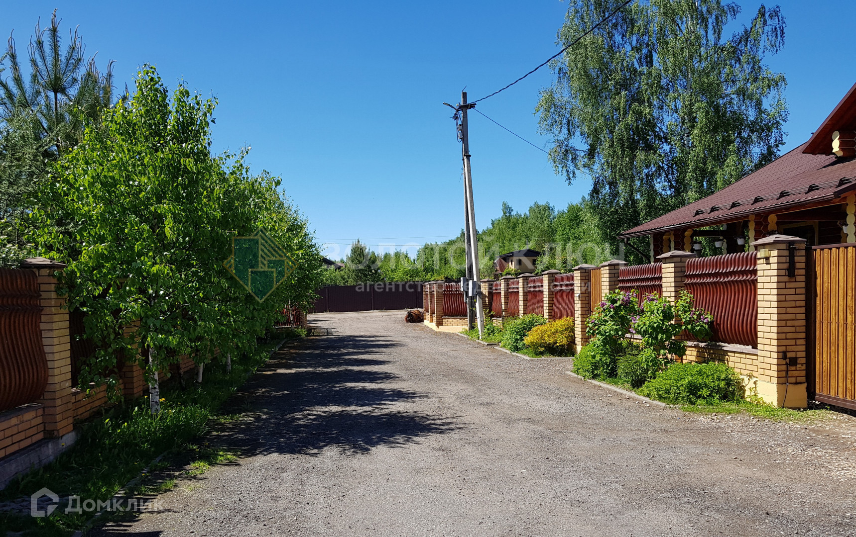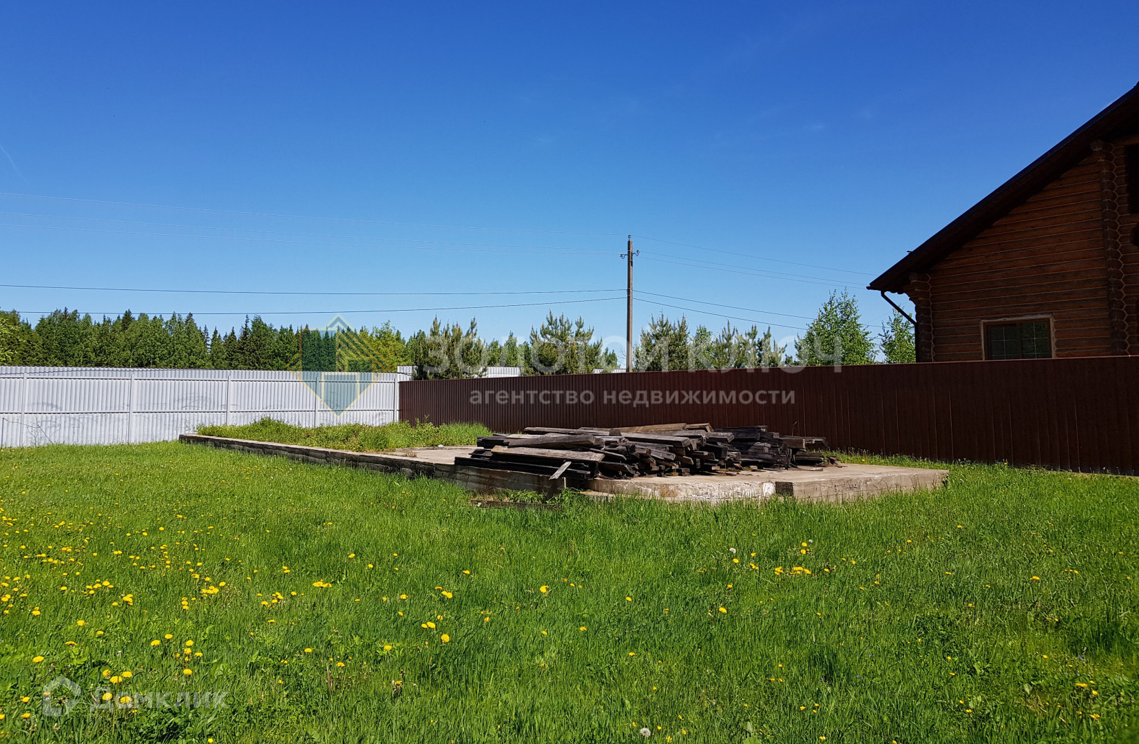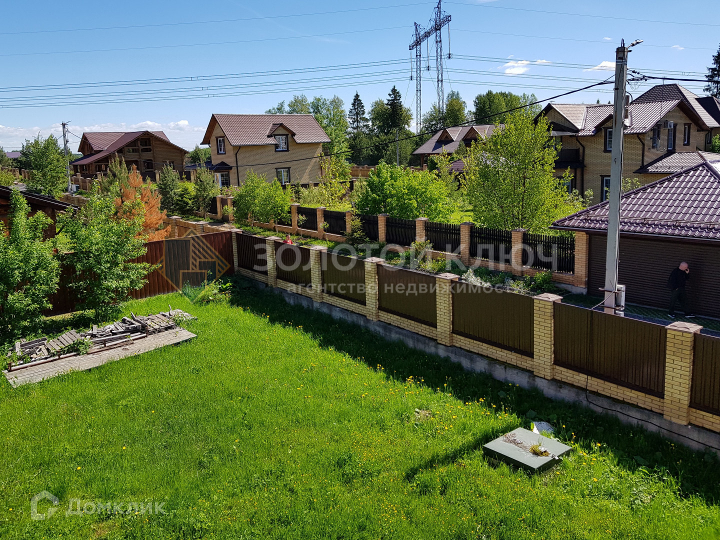 Участок 14 соток правильной прямоугольной формы. Огорожен  забором со всех сторон. Фасадная часть забора сделана в едином стиле всего поселка. Ворота автоматические, откатные. На участке залит фундамент под баню и беседку с бассейном.