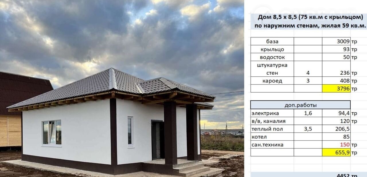 Цена дома 4 452 000 млн.рублей;