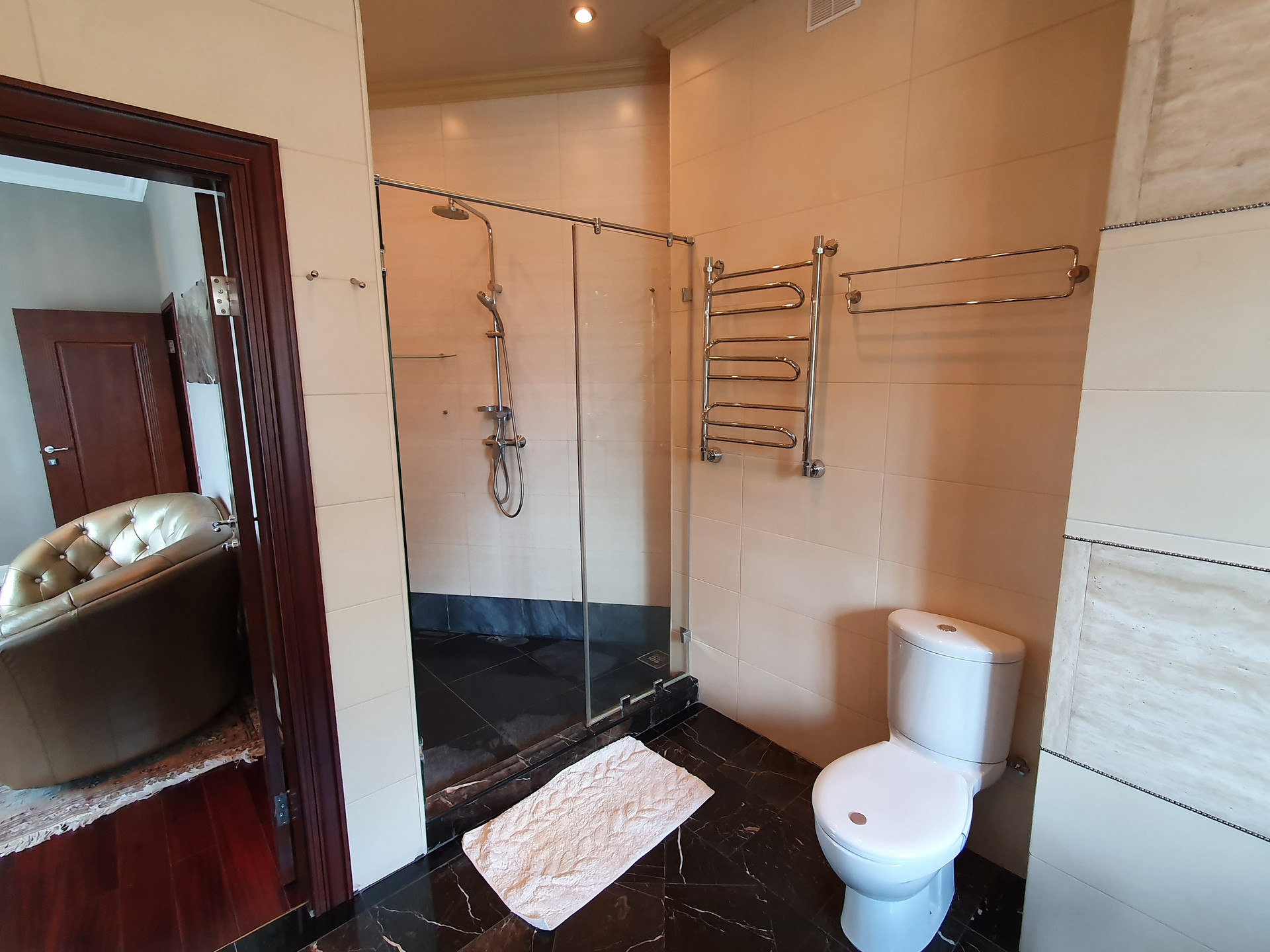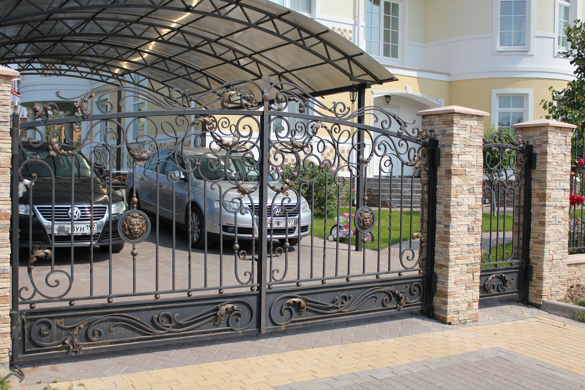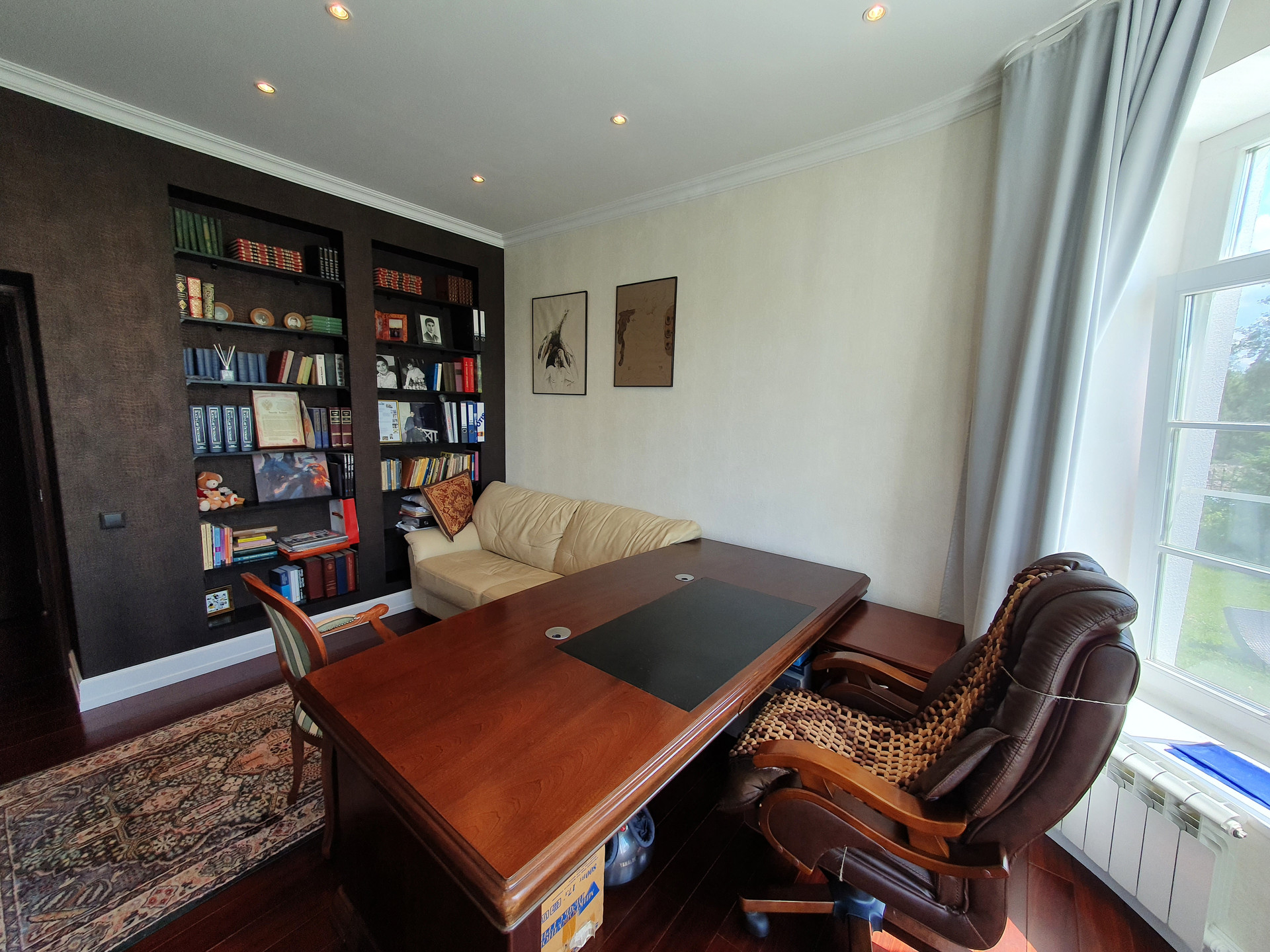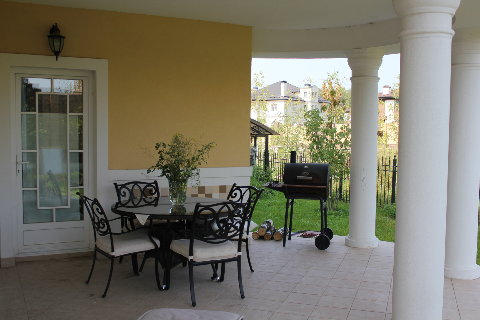 Дом построен очень качественно (судите сами: кирпичные стены в толщину достигают метра; котельная рассчитана на газ и дизель, и котел установлен с большим запасом мощности; использованы только самые качественные натуральные материалы - массив дерева и мрамор на полу, качественные обои, мрамор и брендовые ткани на стенах, и т.п. В свое время, при постройке, в дом было вложено около 2.5 миллиона долларов США). Имеется уютная веранда. Крыша - массивная итальянская твердая глиняная черепица. Дом обнесен кованой оградой, как и принято в элитных коттеджных поселках.