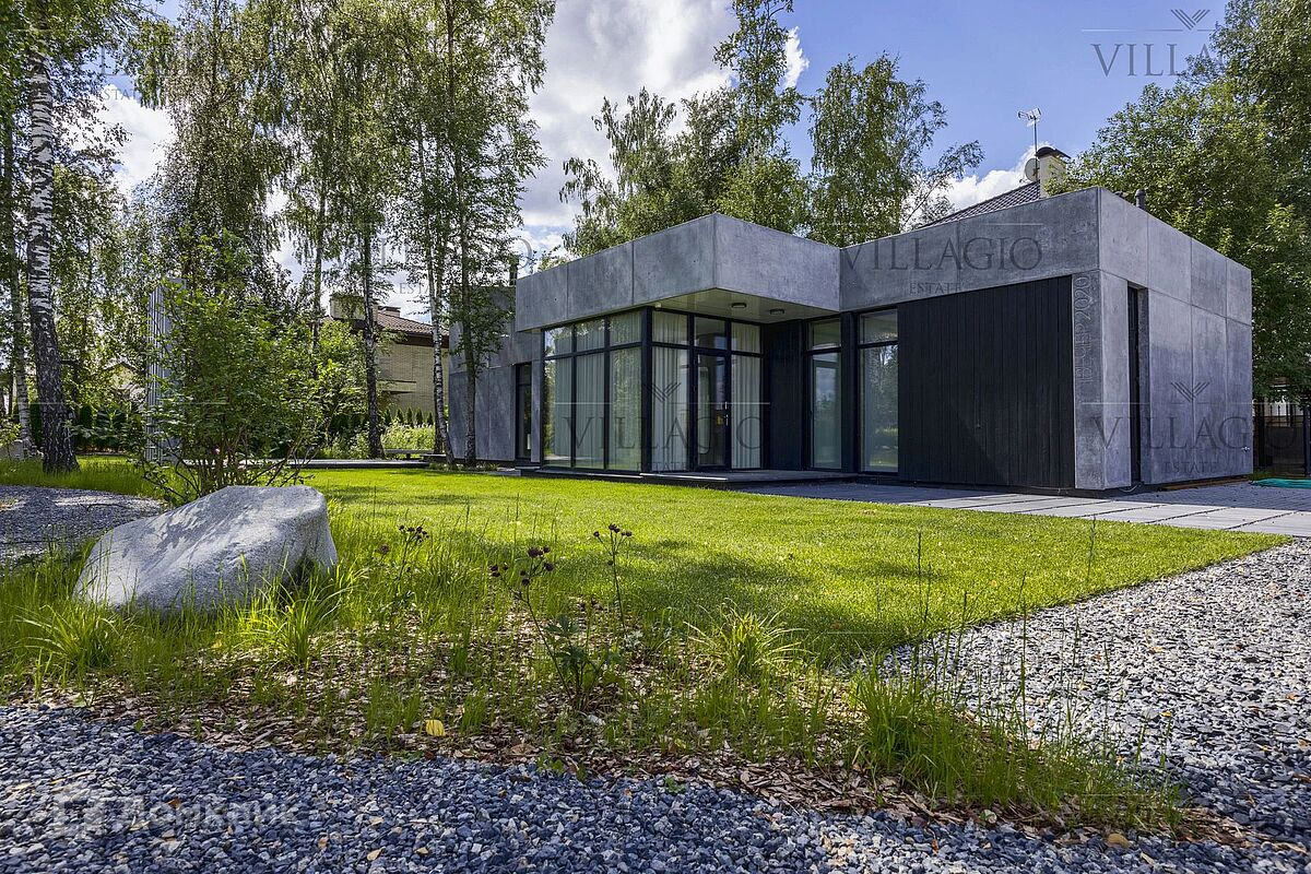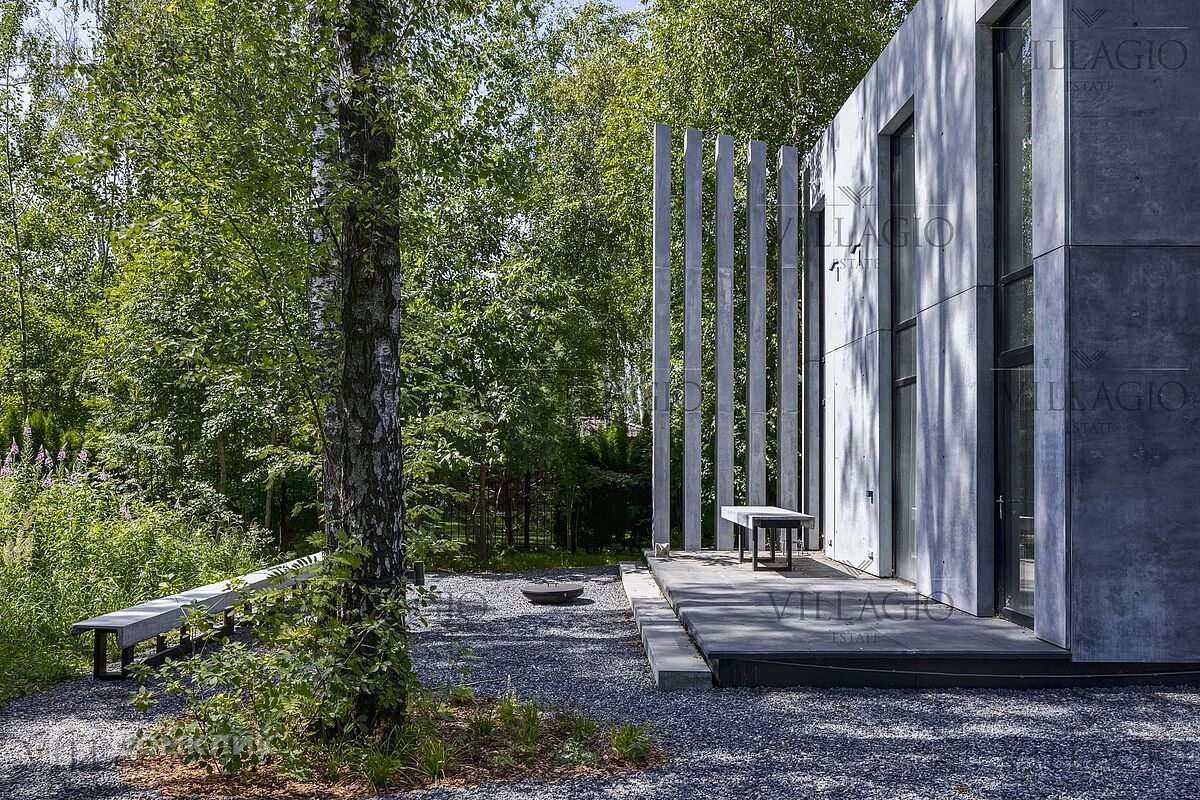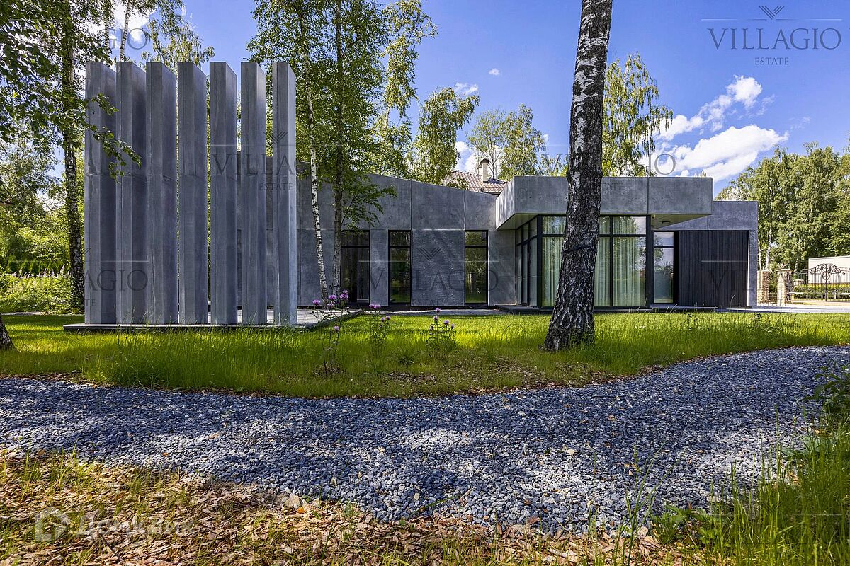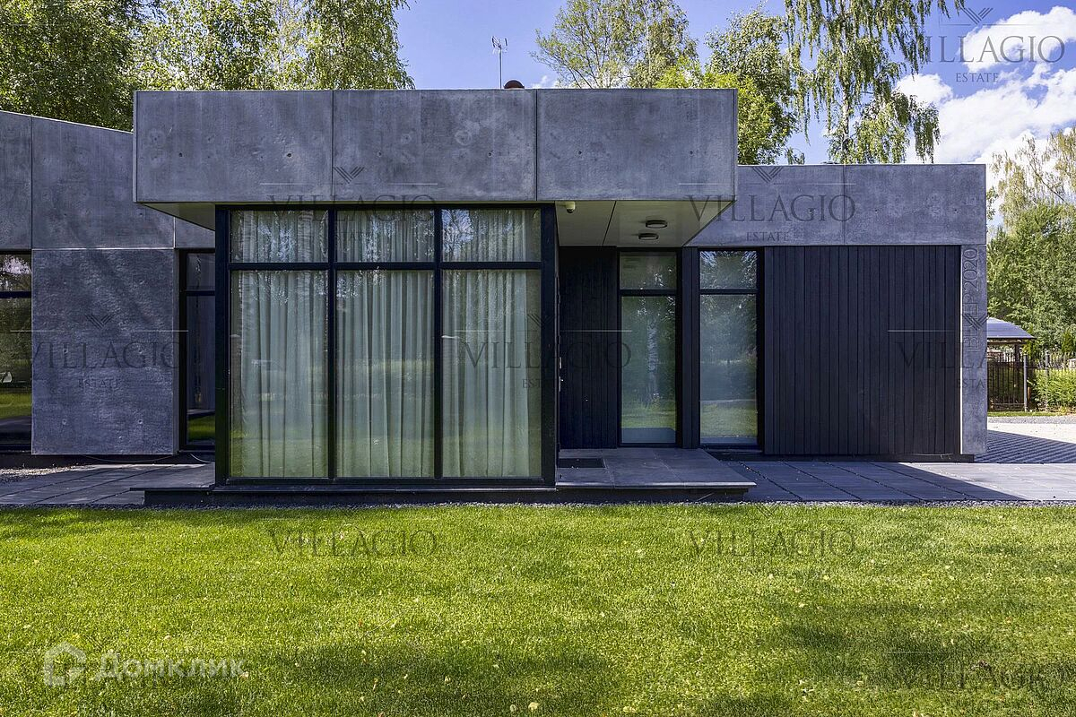 Эксклюзивное предложение Villagio Realty. Уникальный одноуровневый дом, который воплощает в себе современную эстетику и функциональность. Фасады из архитектурного бетона, патио, украшенное бетонными колоннами, интерьеры из металла, стекла, чёрного бетона и дерева, панорамные окна — создают стильный образ, в основе которого лежит минимализм и визуальное разнообразие текстур. Дом полностью готов для комфортной жизни за городом. Интерьеры выполнены под ключ с мебелью и техникой. В планировке — две спальни и гостиная, кухня и столовая с европейской планировкой и одна ванная комната. Фасады выполнены из простых в уходе и безопасных для здоровья фибробетонных плит и бруса под обожжённое дерево. Обратите внимание, готова вся проектная документация для строительства второго корпуса дома с фасадом из вертикального бруса в обработке обожённого дерева. - Теплый водяной пол по всему дому, в оконных проемах конвекторы - Конденсатный котел Buderus c удаленным управлением - Вентиляция с рекуперацией, увлажнением и охлаждением - Видео наблюдение, IP-домоф с удаленным открытием - Заложены все коммуникации для подключения второго корпуса Дом продается с полной обстановке по мебели и технике, включая аудио-видео. Дом расположен в тихом и застроенном квартале элитного посёлка «‎Монтевиль», в 23 км от МКАД по скоростному Новорижскому шоссе. До уникальной набережной с велодорожками и центрального парка с озером не больше 10 минут неспешной прогулки.