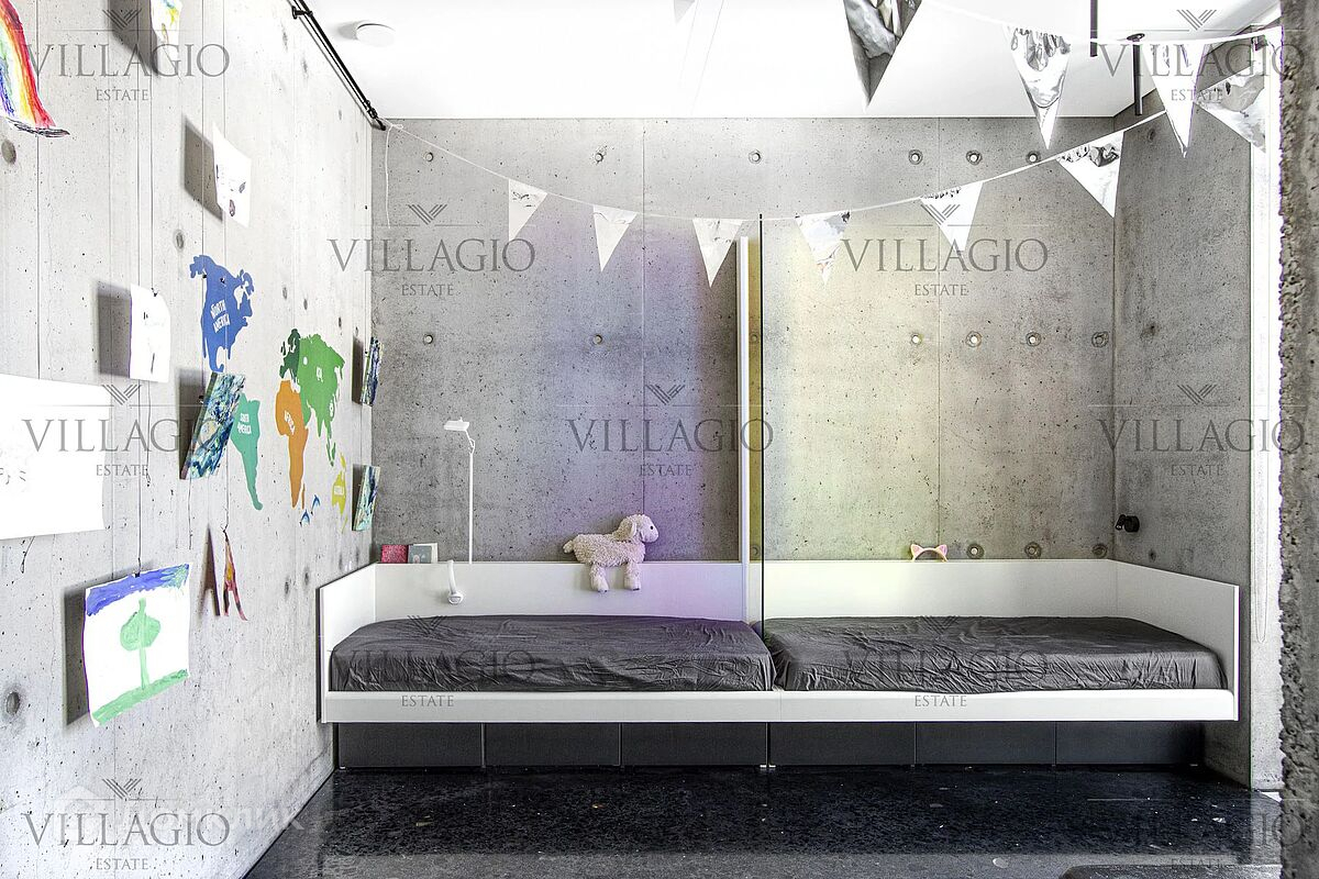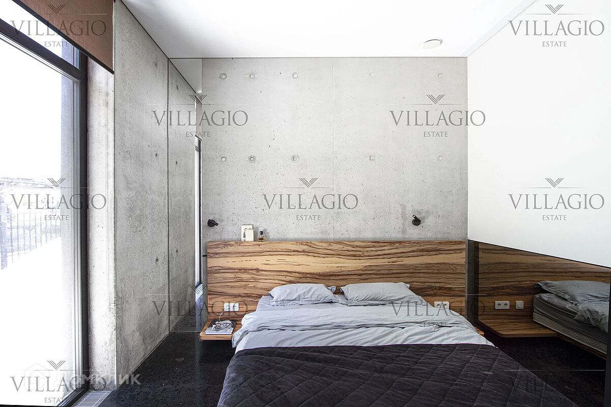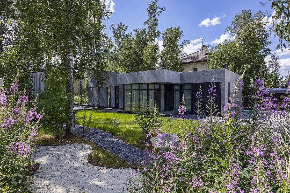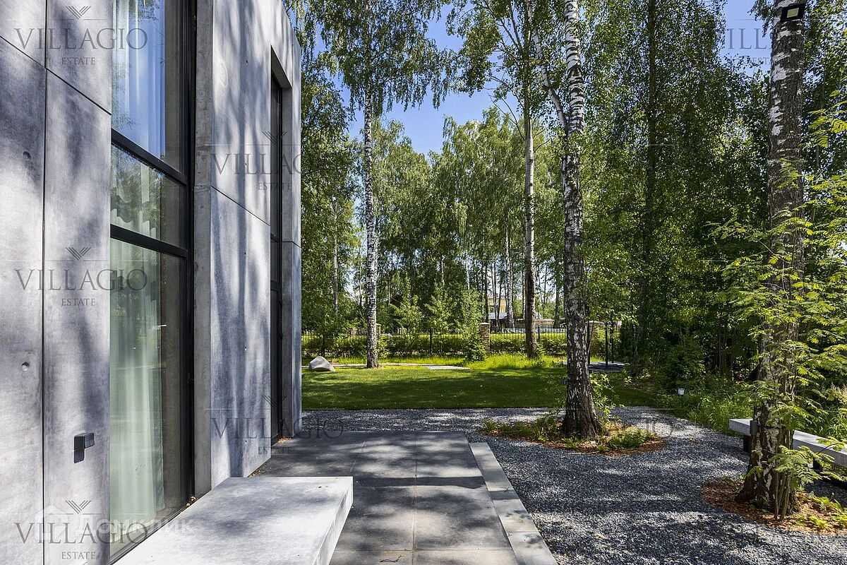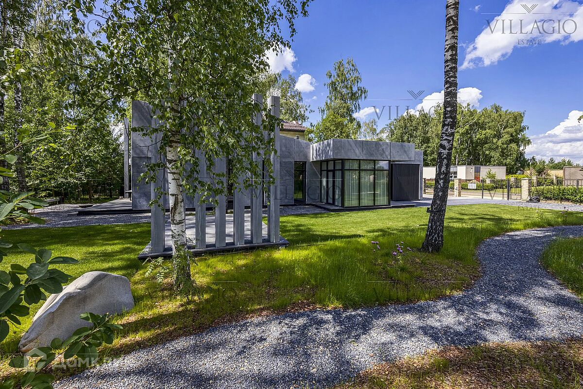 Эксклюзивное предложение Villagio Realty. Уникальный одноуровневый дом, который воплощает в себе современную эстетику и функциональность. Фасады из архитектурного бетона, патио, украшенное бетонными колоннами, интерьеры из металла, стекла, чёрного бетона и дерева, панорамные окна — создают стильный образ, в основе которого лежит минимализм и визуальное разнообразие текстур. Дом полностью готов для комфортной жизни за городом. Интерьеры выполнены под ключ с мебелью и техникой. В планировке — две спальни и гостиная, кухня и столовая с европейской планировкой и одна ванная комната. Фасады выполнены из простых в уходе и безопасных для здоровья фибробетонных плит и бруса под обожжённое дерево. Обратите внимание, готова вся проектная документация для строительства второго корпуса дома с фасадом из вертикального бруса в обработке обожённого дерева. - Теплый водяной пол по всему дому, в оконных проемах конвекторы - Конденсатный котел Buderus c удаленным управлением - Вентиляция с рекуперацией, увлажнением и охлаждением - Видео наблюдение, IP-домоф с удаленным открытием - Заложены все коммуникации для подключения второго корпуса Дом продается с полной обстановке по мебели и технике, включая аудио-видео. Дом расположен в тихом и застроенном квартале элитного посёлка «‎Монтевиль», в 23 км от МКАД по скоростному Новорижскому шоссе. До уникальной набережной с велодорожками и центрального парка с озером не больше 10 минут неспешной прогулки.
