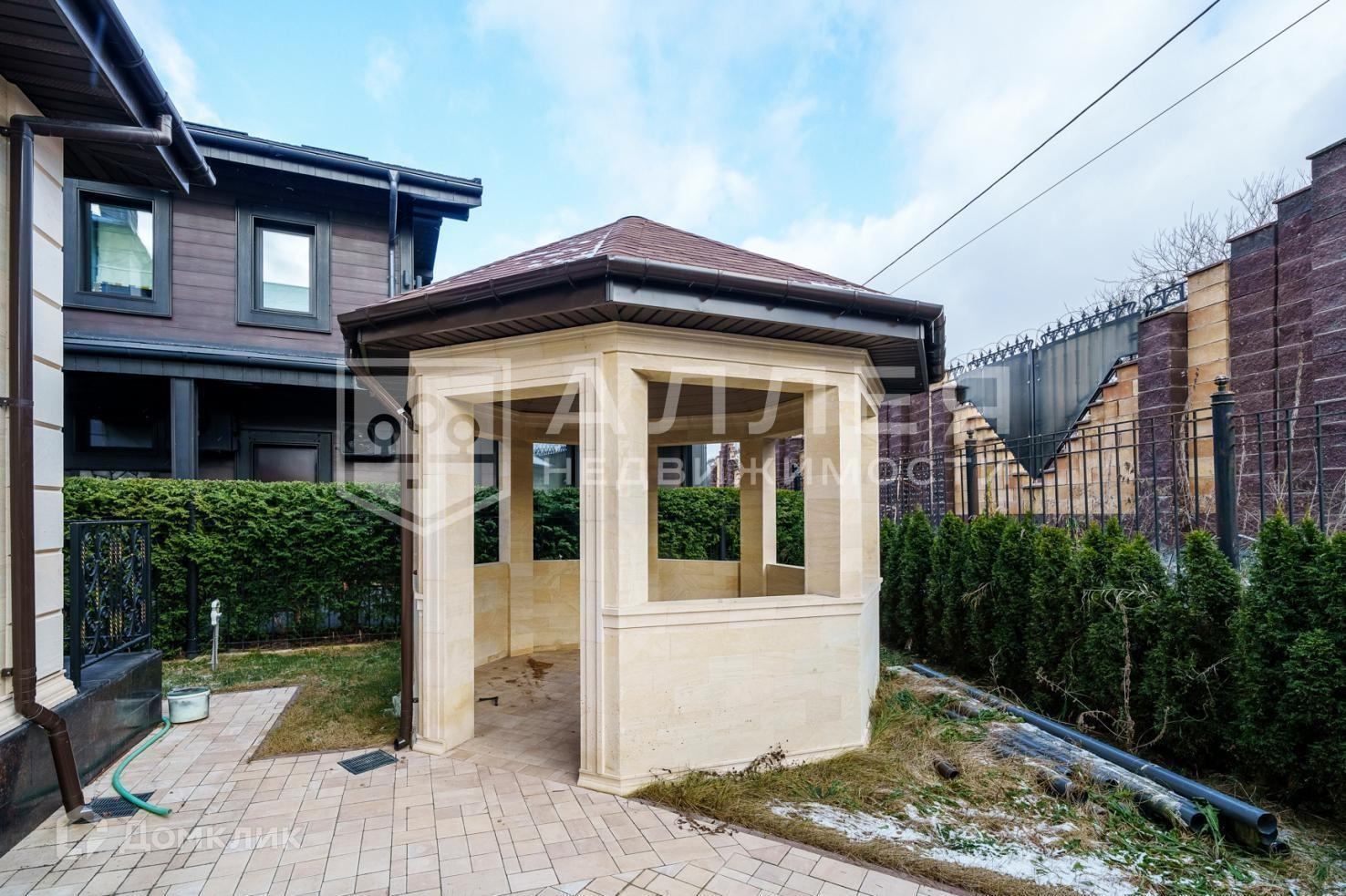 Участок: По периметру участка установлен забор. На въезде автоматические ворота. На территории  высажен газон и установлен автополив. Дополнительно от основного дома построен гараж на 2 м/места, с квартирой для персонала на втором этаже. Обустроена беседка с зоной для барбекю.