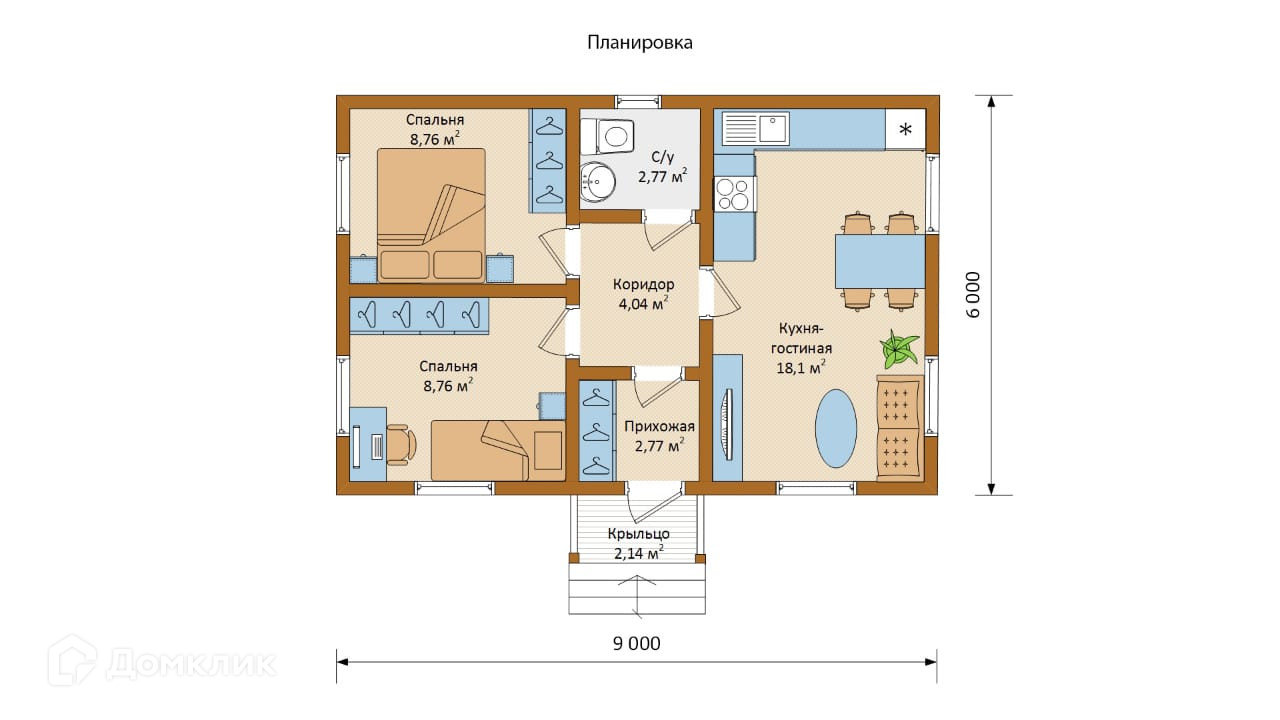 Общая площадь 56 м2