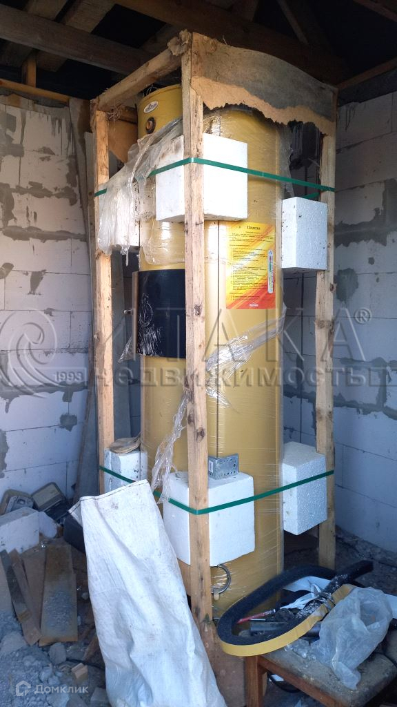 к дому пристроена котельная из пеноблоков, котел 200 м2, (твердо-топливный) септик с тройным переливом, электричество 15 кВт, крыша металлочерепица-2-х скатная, Стеклопакеты. 1 этаж- высота потолка 2.30, 2 этаж-2.50, чердак 1.80, готовность дома 60-70%, отопление не подключено.