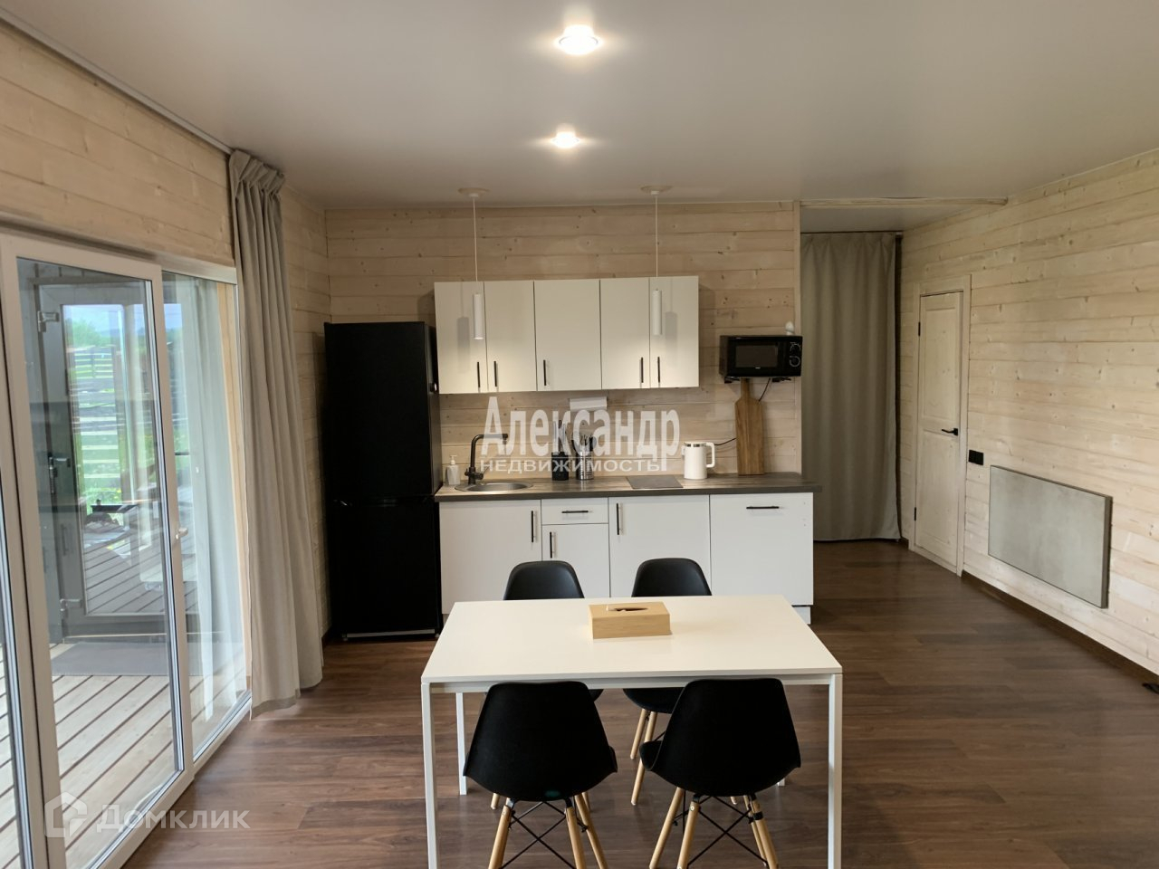Современный каркасный дом с террасой площадью 102,2 кв.м. построен по дизайн-проекту с использованием высокотехнологичных, надежных, качественных материалов. Дом на сваях имеет односкатную крышу, шикарную внутреннюю отделку, теплый пол, сауну, отопление электрическими конвекторами Никатен. Вода из скважины глубиной 20 м. проходит все необходимые этапы через фильтры очистки и умягчители воды, можно использовать как питьевую, септик 3 секции. В тамбуре и прихожей установлены системы хранения. Проведен интернет оптоволокно.Система УМНЫЙ ДОМ подключена к Алисе и позволяет дистанционно регулировать температуру в доме, включать сауну, открывать и закрывать электрические откатные ворота(можно открывать как с телефона находясь в городе, так и с брелока). Две комнаты правильной формы по 12 кв.м. каждая мебелированы и оснащены необходимой для комфортного проживания техникой, большая кухня-гостиная 26 кв.м. позволяет удобно размещаться большой семье, готовить на кухне, кушать глядя через большое панорамное окно на террасу и зеленый двор. Есть посудомоечная машина, стиральная машина, холодильник, встроенная плита, установлены дополнительные фильтры для питьевой воды.