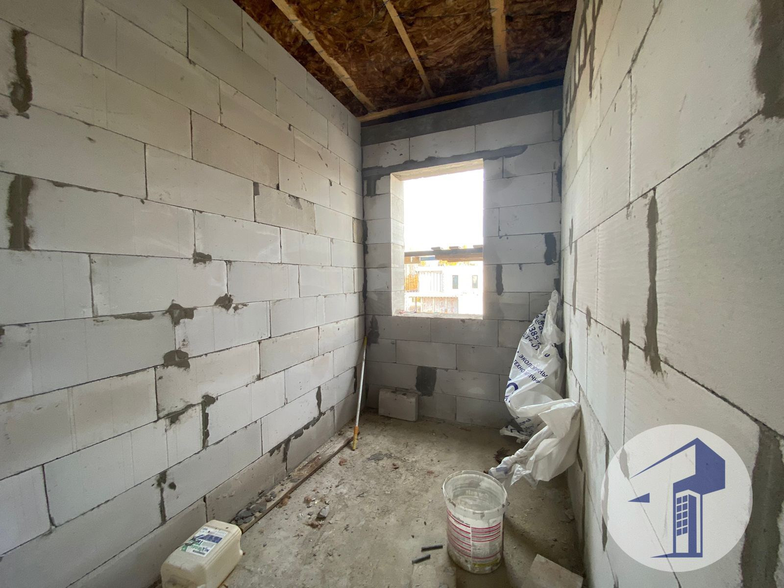 Установлены стеклопакеты. Отштукатурены стены .