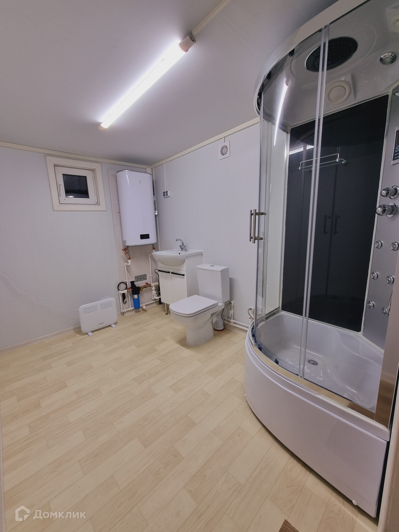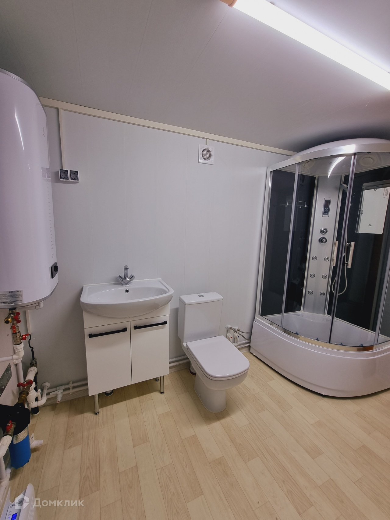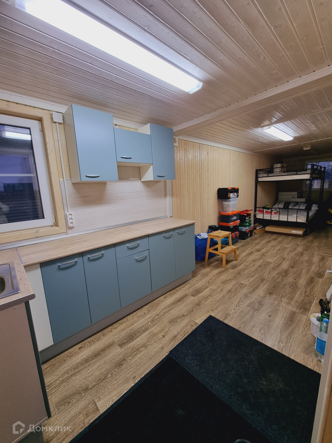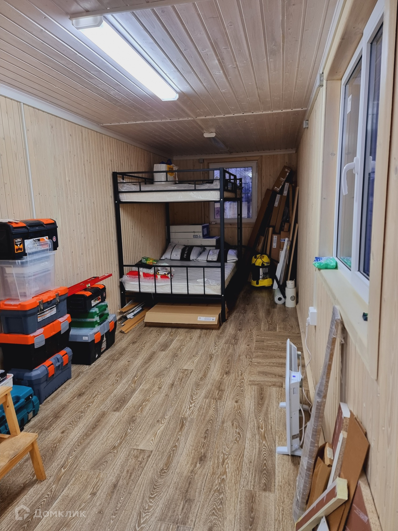 На участке построен временный дом. В доме сан/узел, душ, кухня и спальная зона. Дом теплый, подходит для круглогодичного проживания.