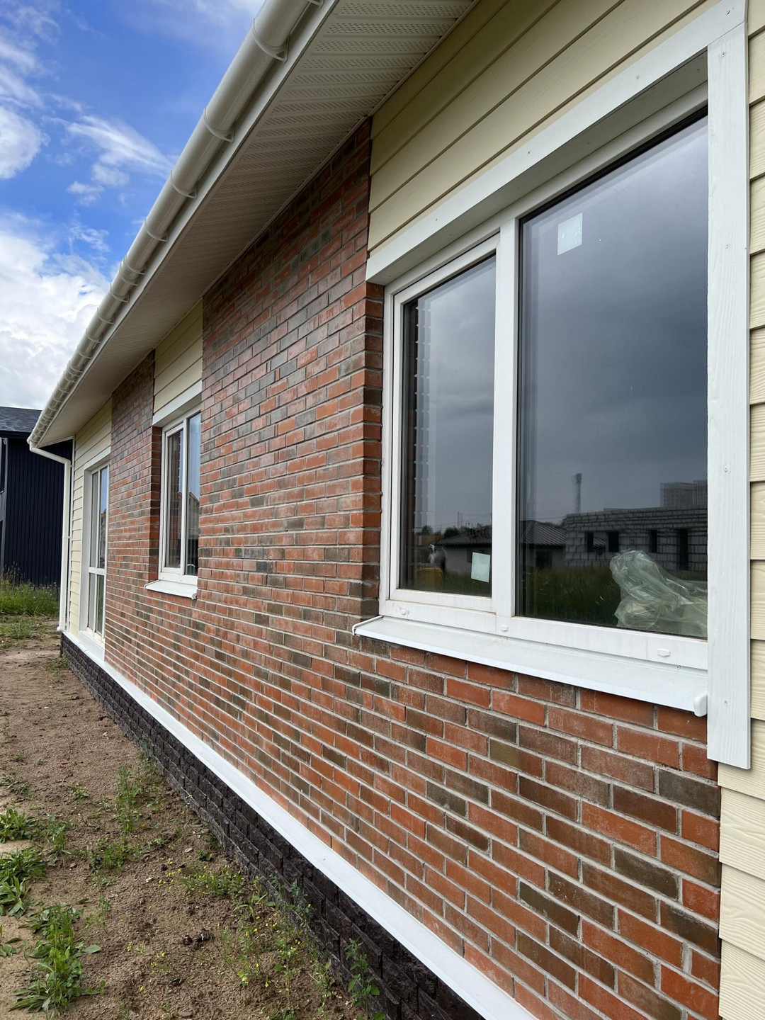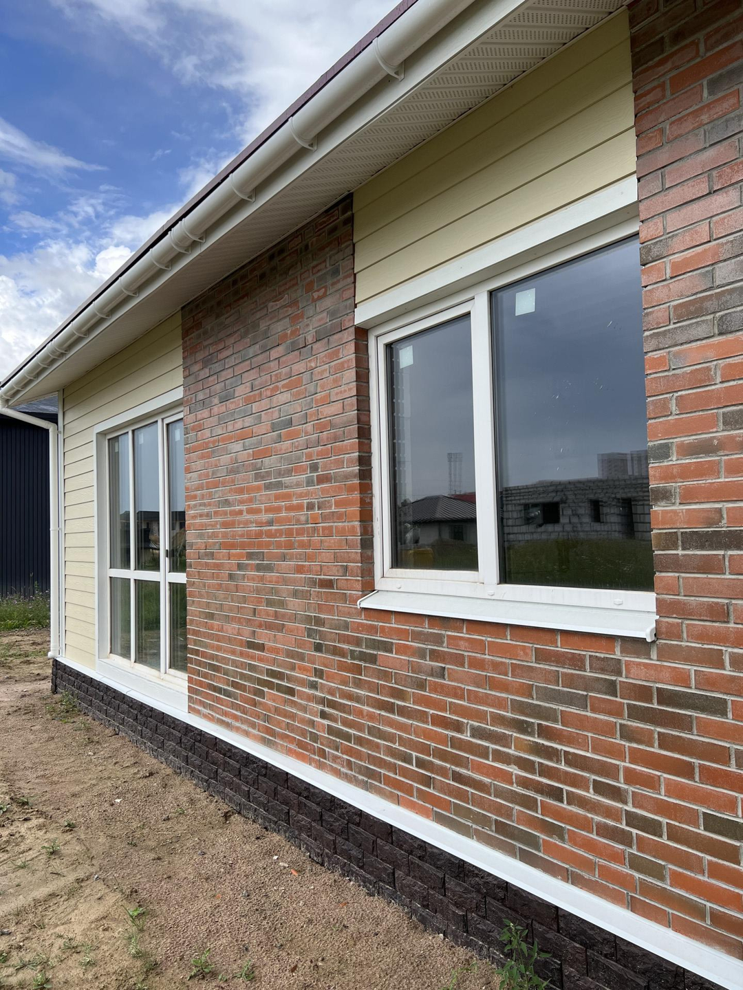 Наружная отделка стен комбинированная: облицовочный кирпич TERCA(Эстония)+ фиброцементный сайдинг CEDRAL.
