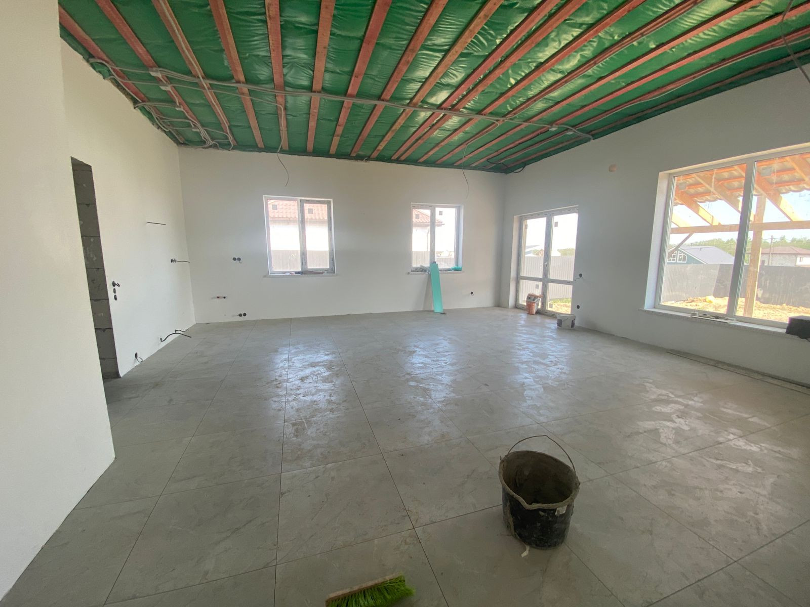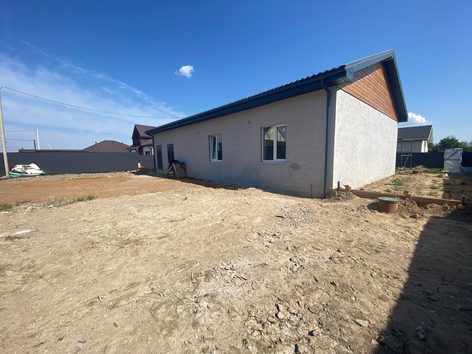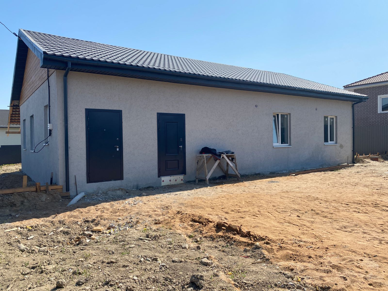 На данный момент дом находится в состоянии предчистовой отделки: выровнены стены, выполнена разводка электричества, воды и тепла , ведутся работы по чистовой отделке.