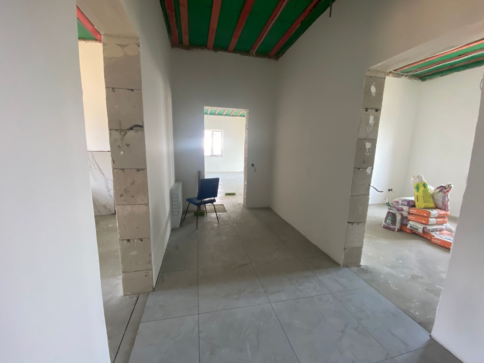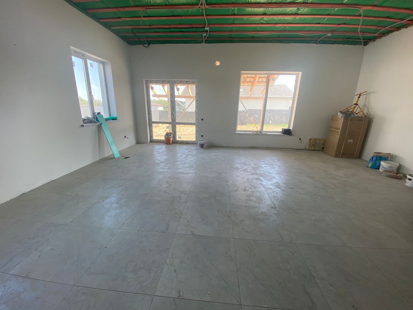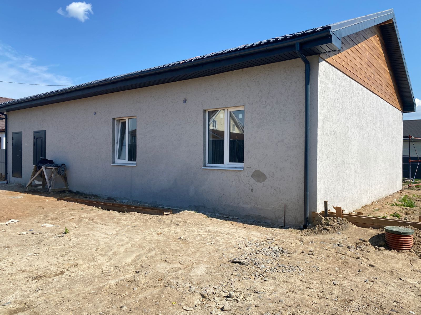 На данный момент дом находится в состоянии предчистовой отделки: выровнены стены, выполнена разводка электричества, воды и тепла , ведутся работы по чистовой отделке.
