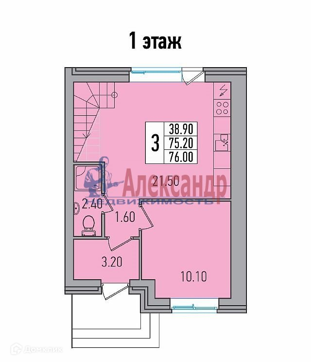 Общая площадь 76 м2