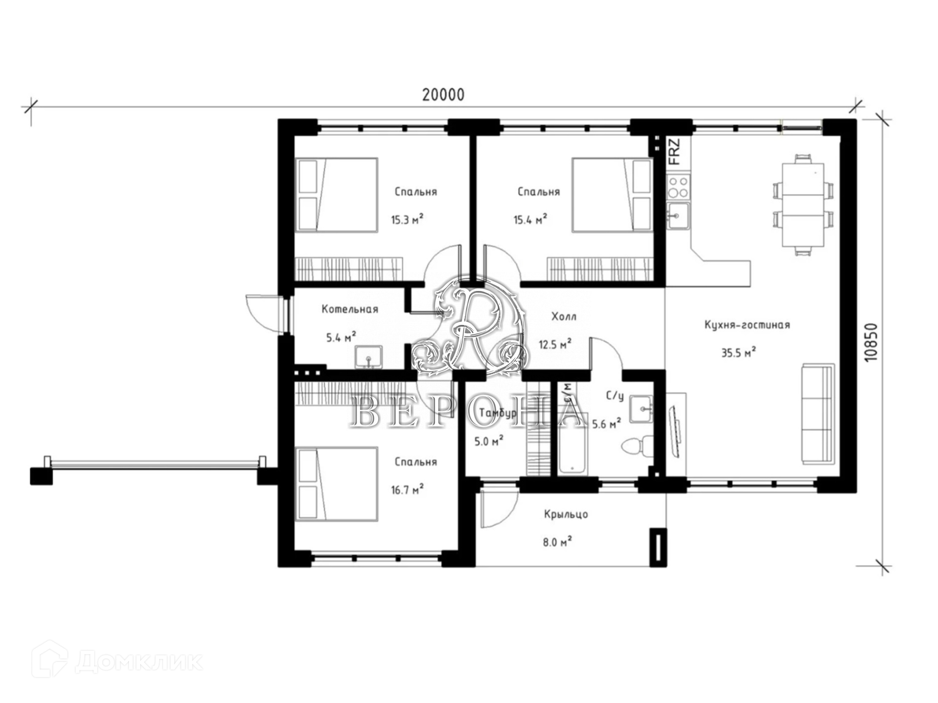 - Три спальных комнаты, из двух так же возможен выход на веранду.