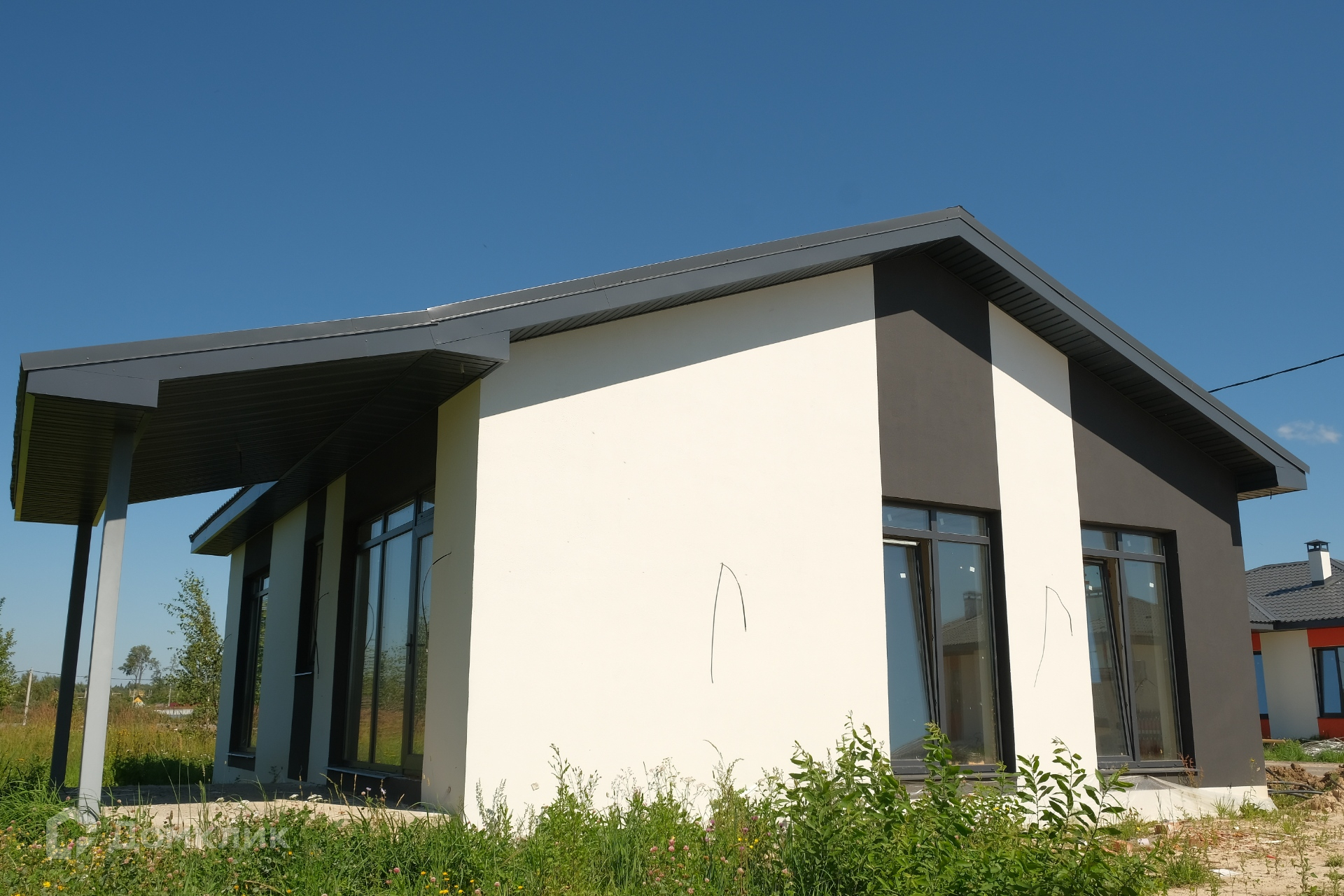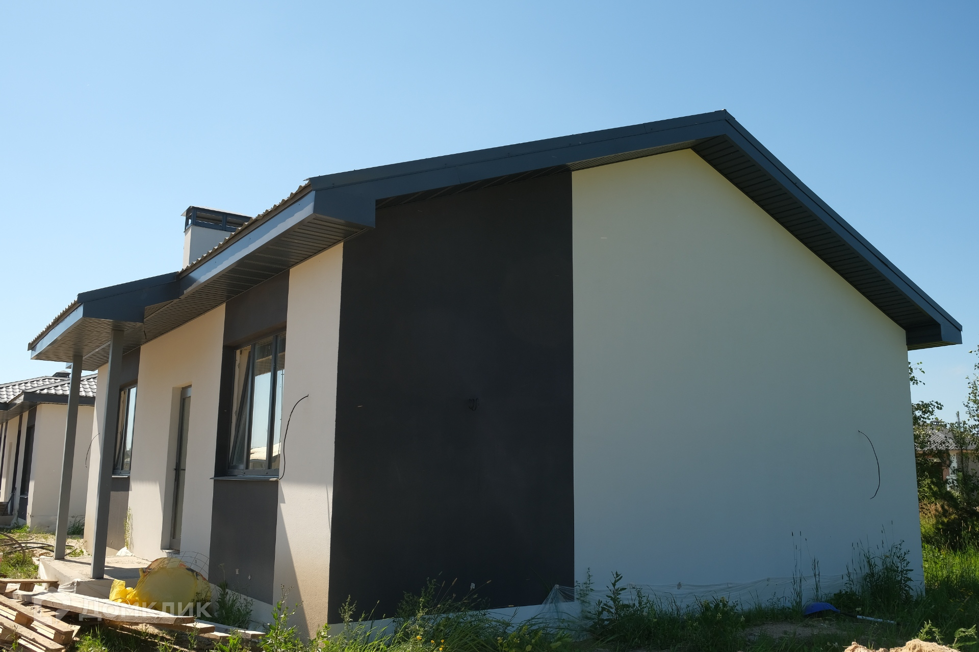 О строении. Все дома выполнены из кирпича. С утеплением. Ленточно-свайный фундамент. В предчистовой отделке (белая коробка готовая к косметическому ремонту) установлены панорамные окна, котел, водопровод и септик, окна и терраса. Газон,забор, деревья. Отличие лишь в том, что вы сами воплощаете свои дизайнерские идеи.