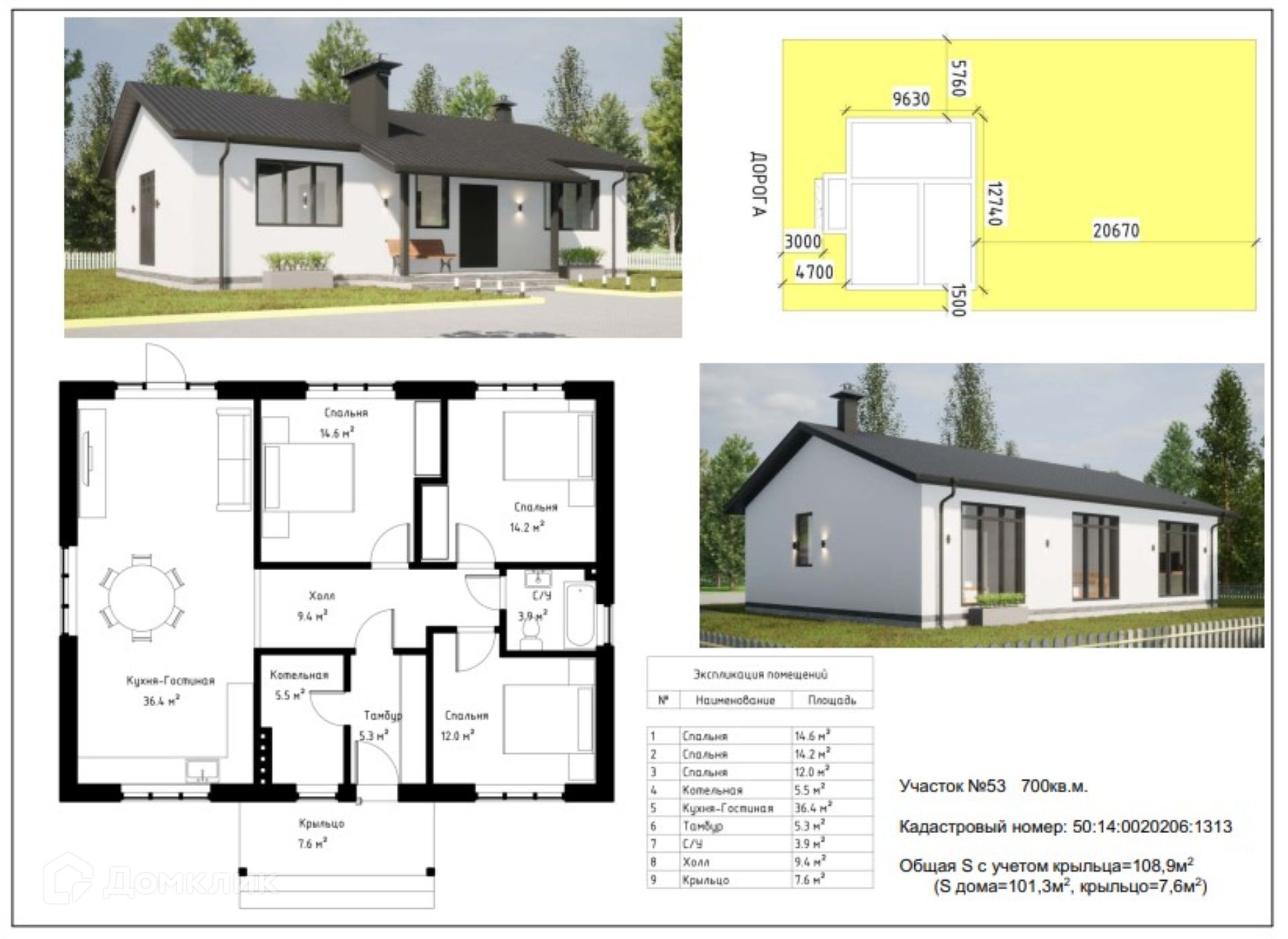 1-этажный дом, 110 м2, на продажу в коттеджном посёлке Наследие