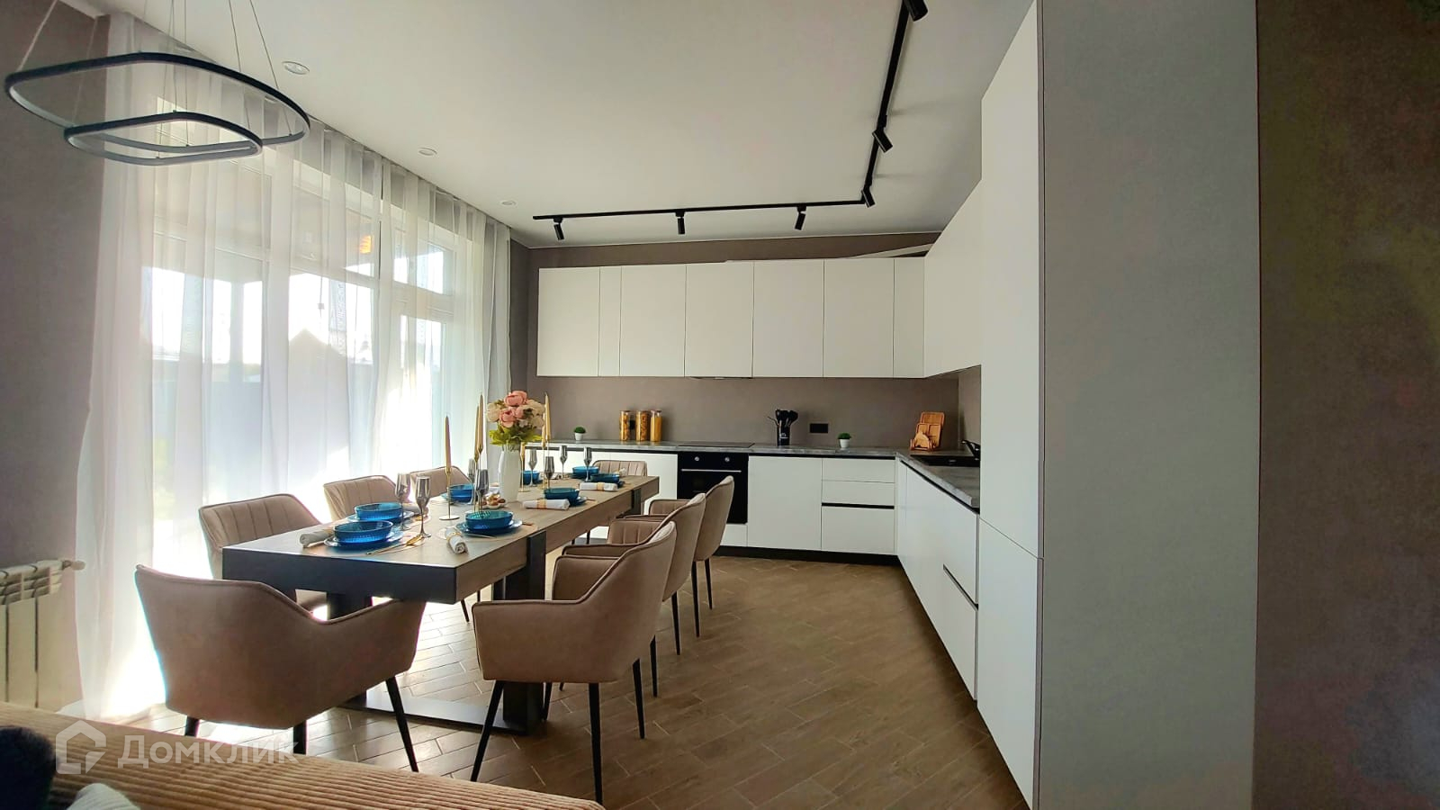 Одноэтажный дом в cтилe Хайтек. Дизaйнepcкий ремонт, гдe только кухня-гостиная 35,5 кв.м с мебелью и встроенной техникой. Три спальни полностью мебелированные. Теплые полы по всей площади дома, отличная, продуманная планировка, окна в пол. Парковочное место на 4-ре автомобиля.