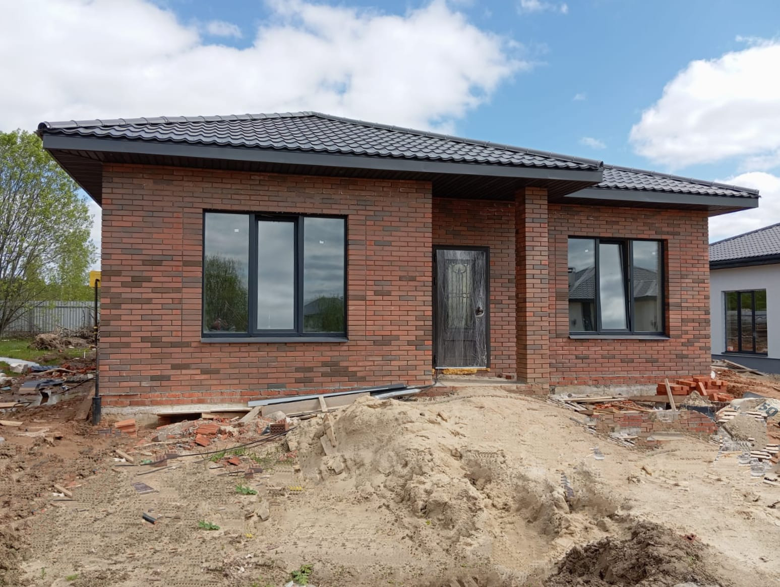 Дом 1 этажный 100 м2 на 6,2 сотках. Из керамики, утеплителя и керамической облицовки.