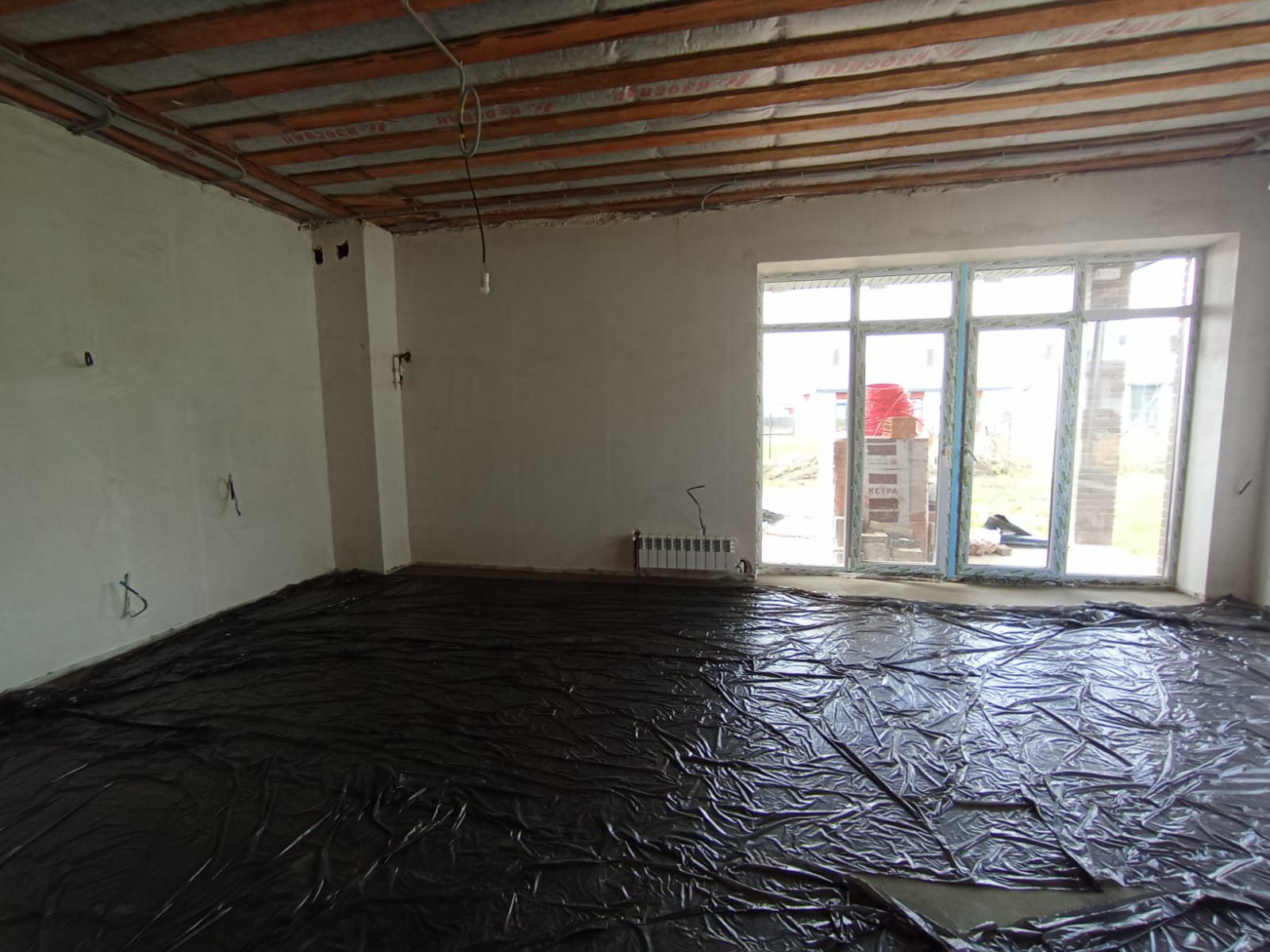 Дом будет в предчистовой отделке. На стенах гипсовая штукатурка, на полу полусухая стяжка.