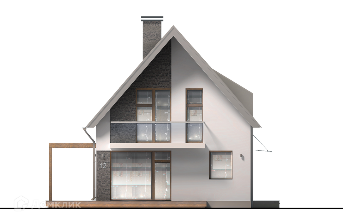 Пергола, соединяющая дом с природной средой, может быть декорирована или остеклена. Фасады отделаны декоративной штукатуркой с инкрустацией клинкерной. Галерея широких оконных проемов первого этажа, остекление лестничного пролета и ряды мансардных окон служат гарантией того, что всё пространство дома будет наполнено светом.