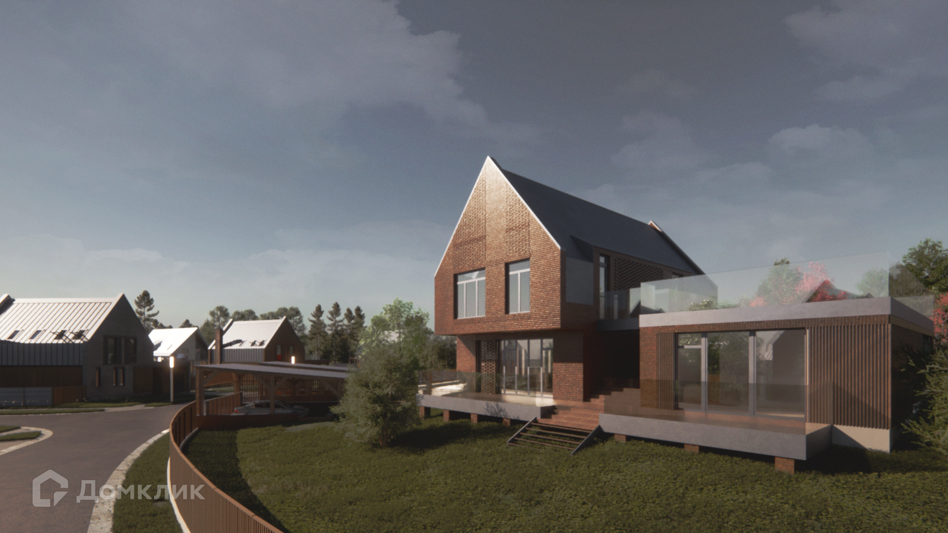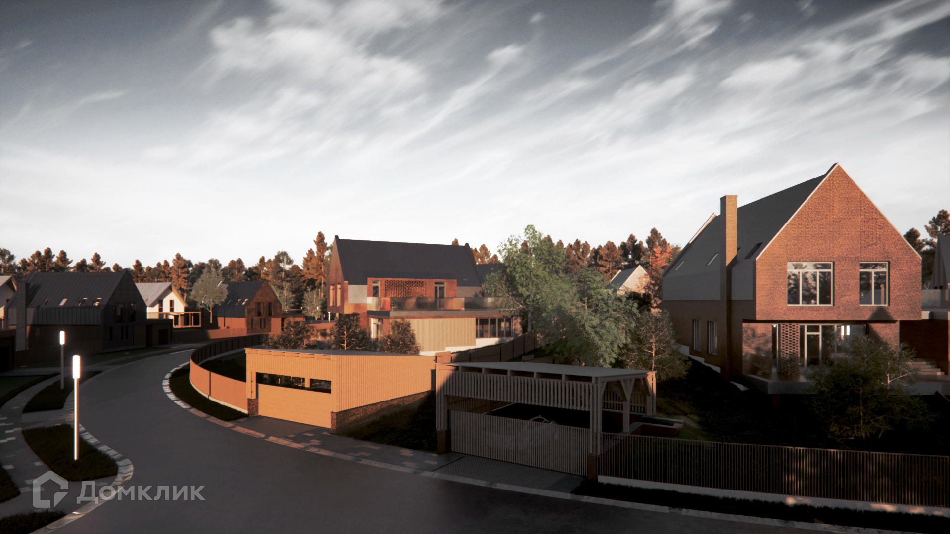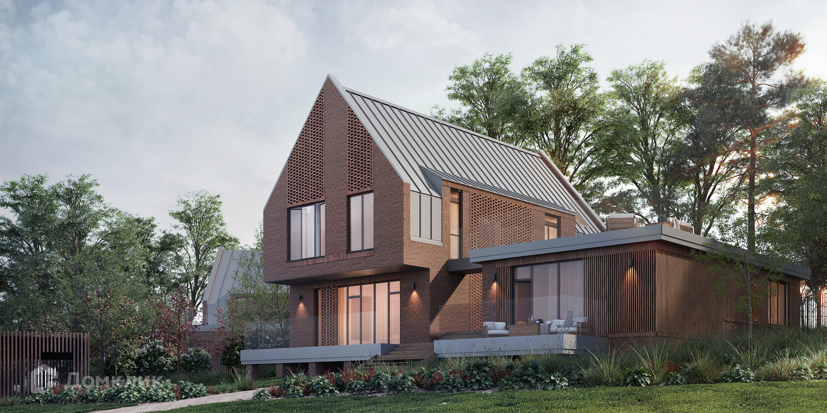 Эти домовладения обладают лучшими видовыми характеристиками за счет расположения на самой высокой отметке рельефа — они точно понравятся любителям выразительной и уникальной архитектуры. Лаконичные фронтоны заострённой формы, формирующие фронт улицы, призваны напоминать об уютных городах Северной Европы. Широкие окна кухни-гостиной выходят на террасу, а обилие света на втором этаже обеспечивают мансардные окна и шахматная кладка кирпича.