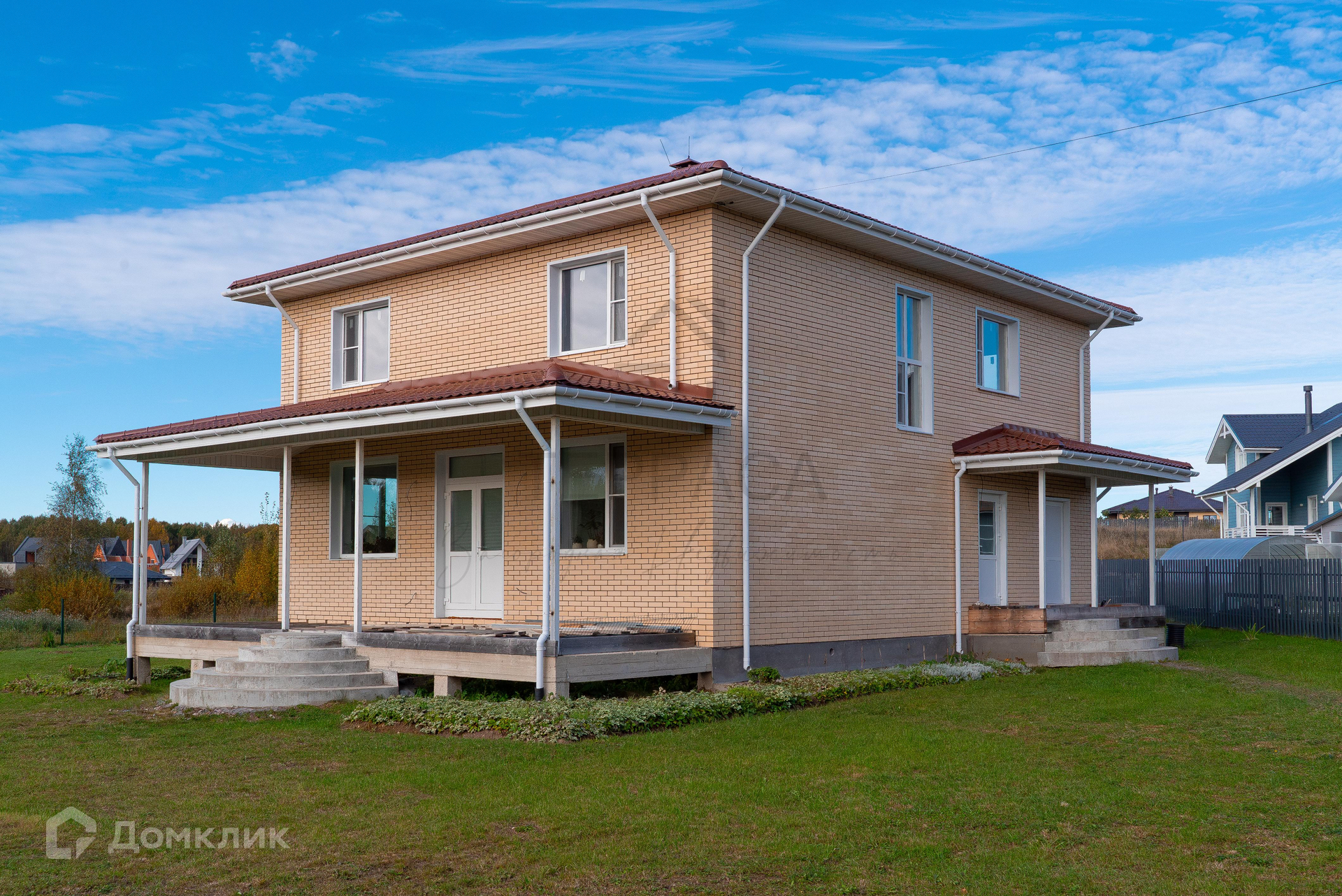 Фасад дома облицован кирпичом.