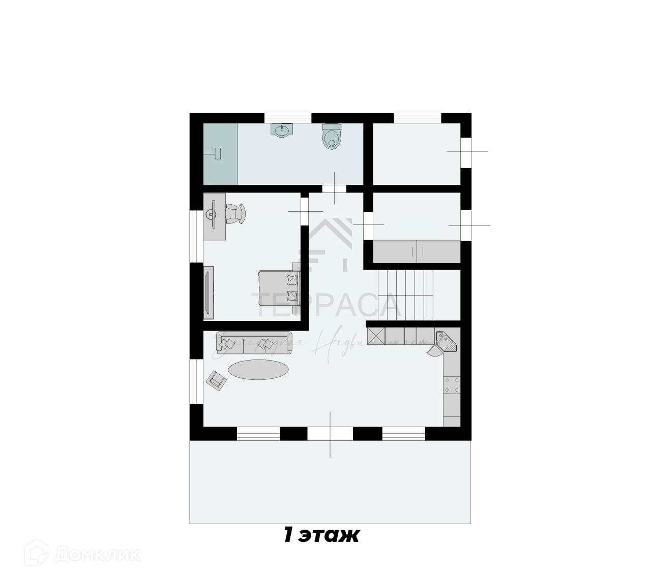 1 этаж – терраса, прихожая, кухня-гостиная, изолированная комната, с/у, техническое помещение.