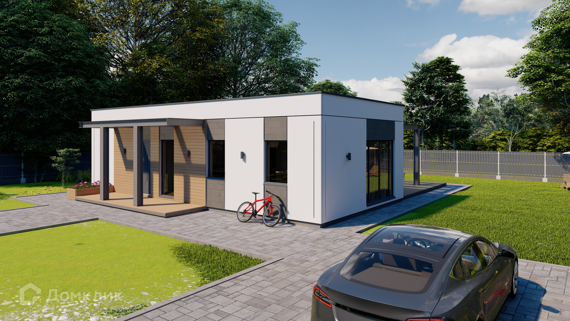 Сейчас заканчивается монтаж забора с откатными воротами с мотором, оборудуется терраса 36м2.
