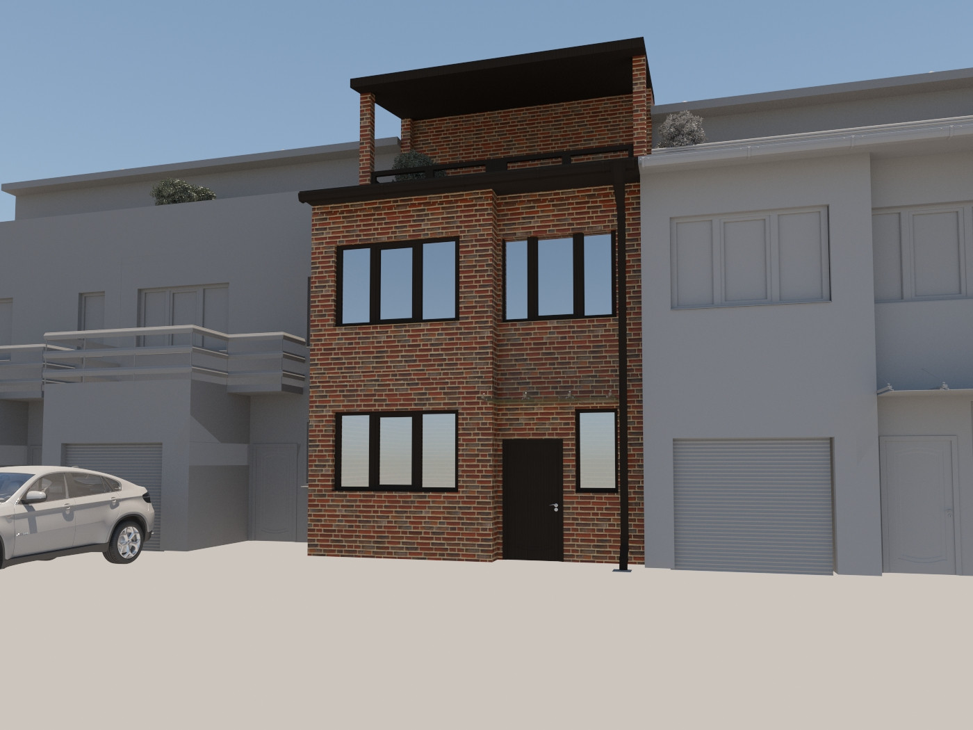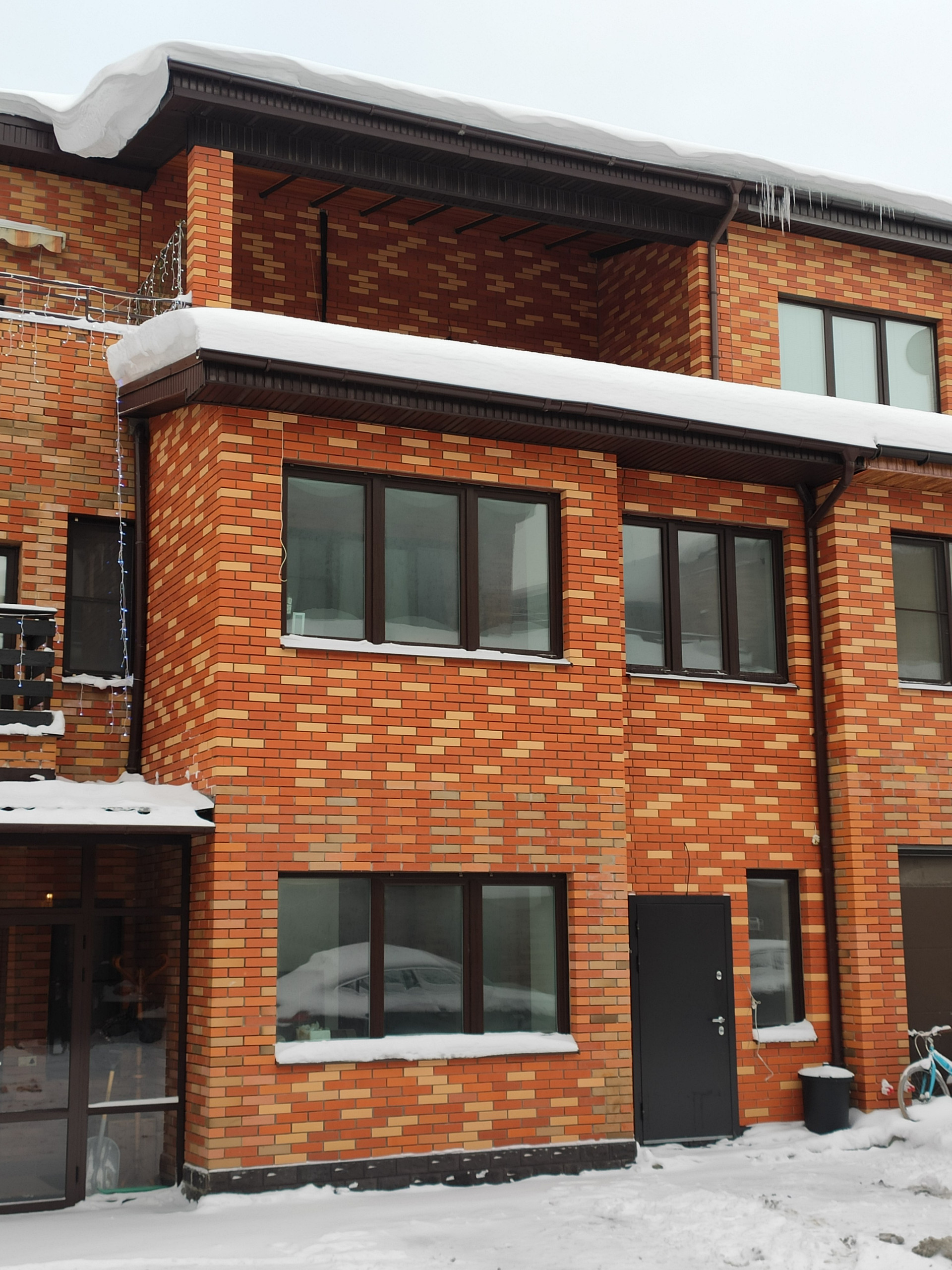 В таунхаусе два выхода: основной на улицу и на задний двор, где всё подготовлено для зоны барбекю. Установлены энергосберегающие входные двери с терморазрывом.