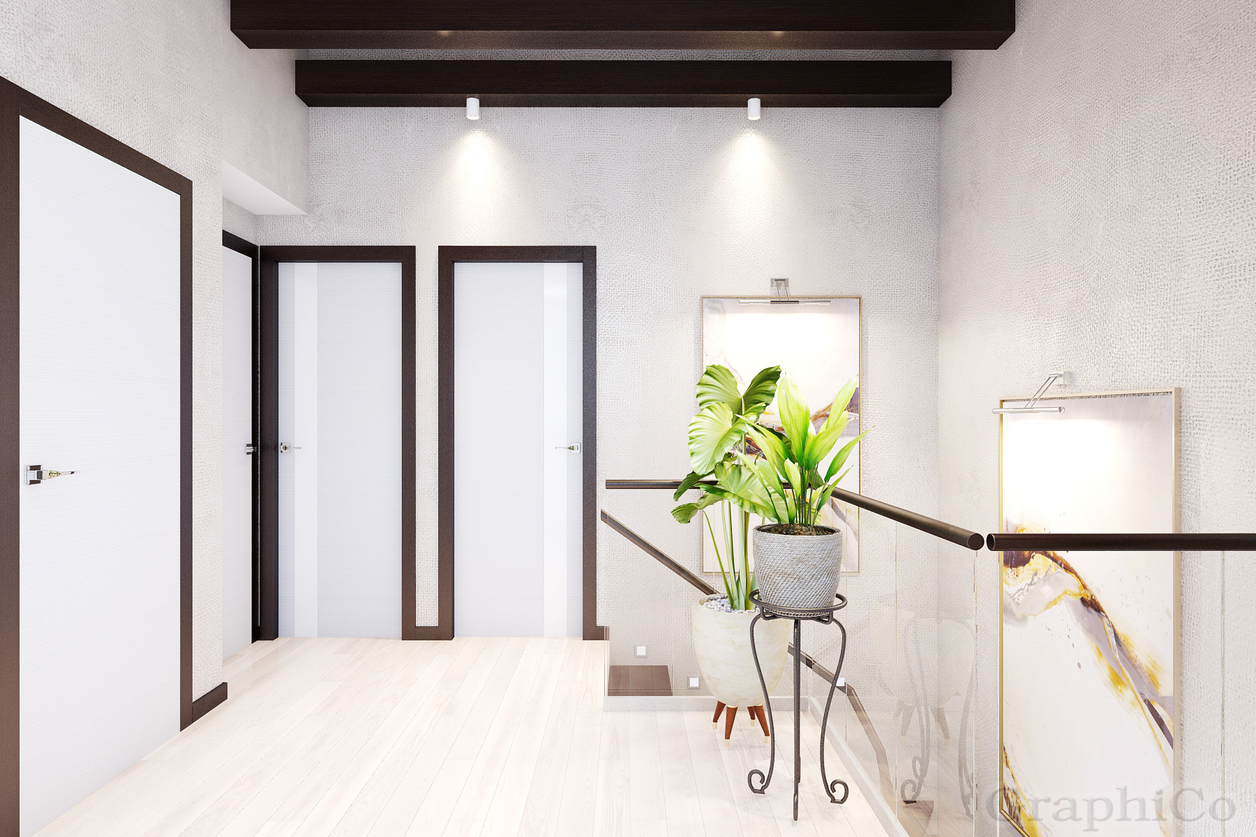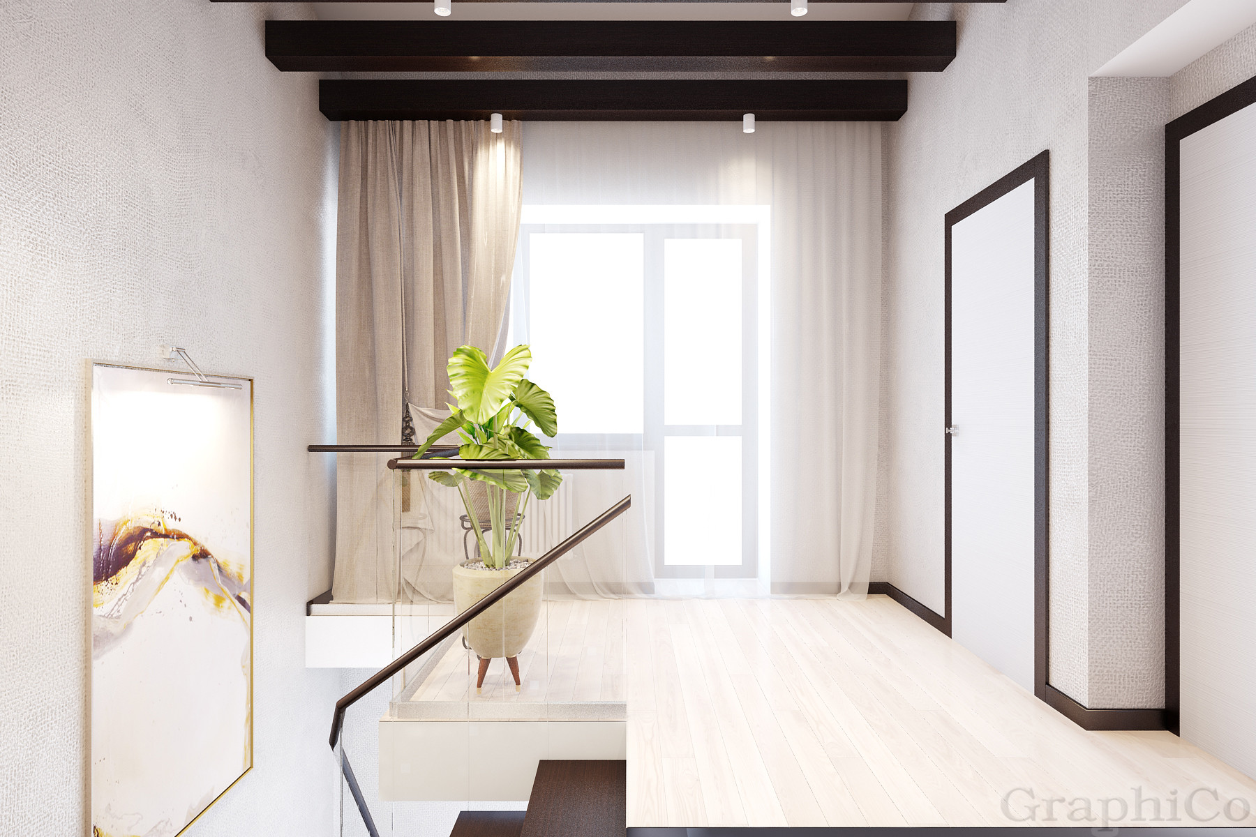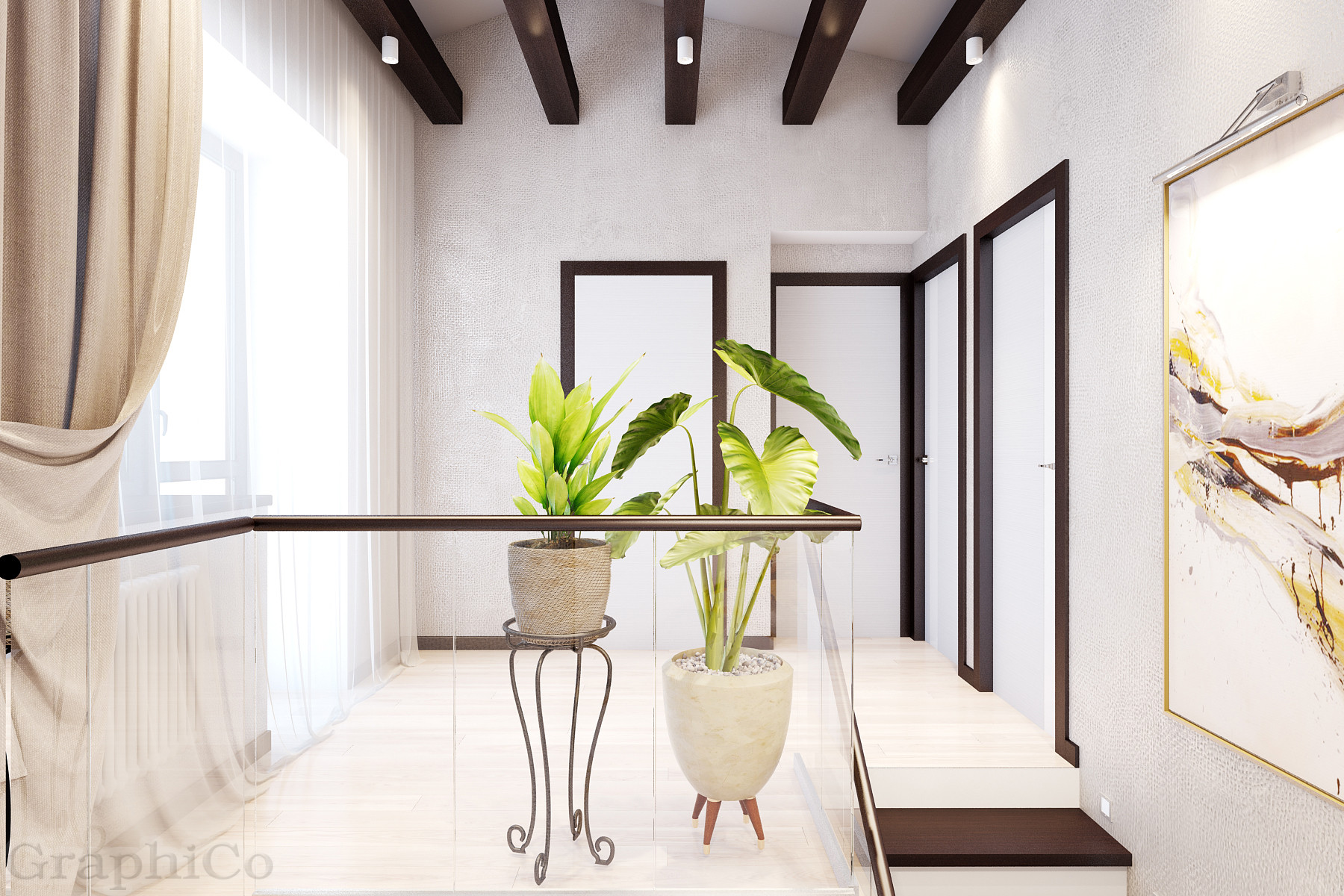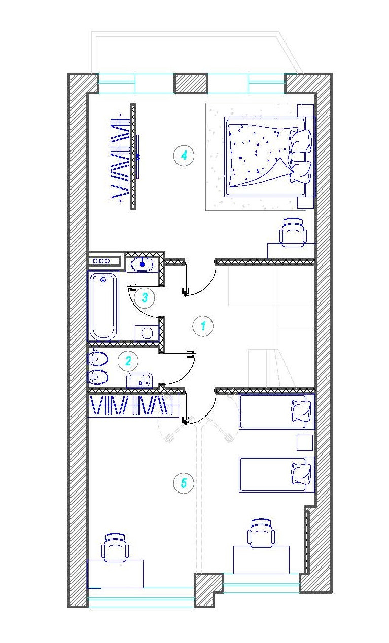 Третий этаж (высота потолков до 4,2 м): две спальни, совмещенный санузел, большая терраса под крышей (из неё можно сделать комнату или оставить как зону отдыха под крышей на свежем воздухе).