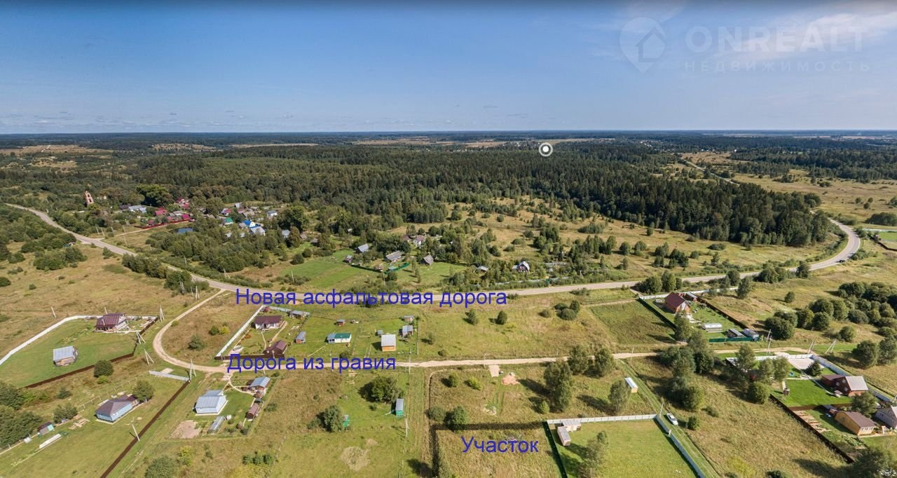 До поселка хороший асфальт, внутри поселка  гравийные дороги, непосредственно к участку  грунтовая дорога около 60 метров.