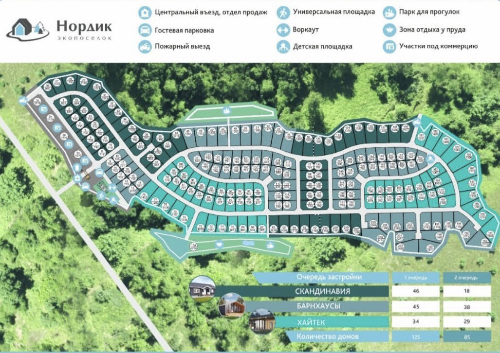 Посёлок в едином стиле, с одинаковым забором и домами в едином стиле (у нас квартал Барнхаус, например можно поставить ДубльДом). Скоростное Новорижское шоссе позволяет без пробок доезжать до посёлка за 45 минут