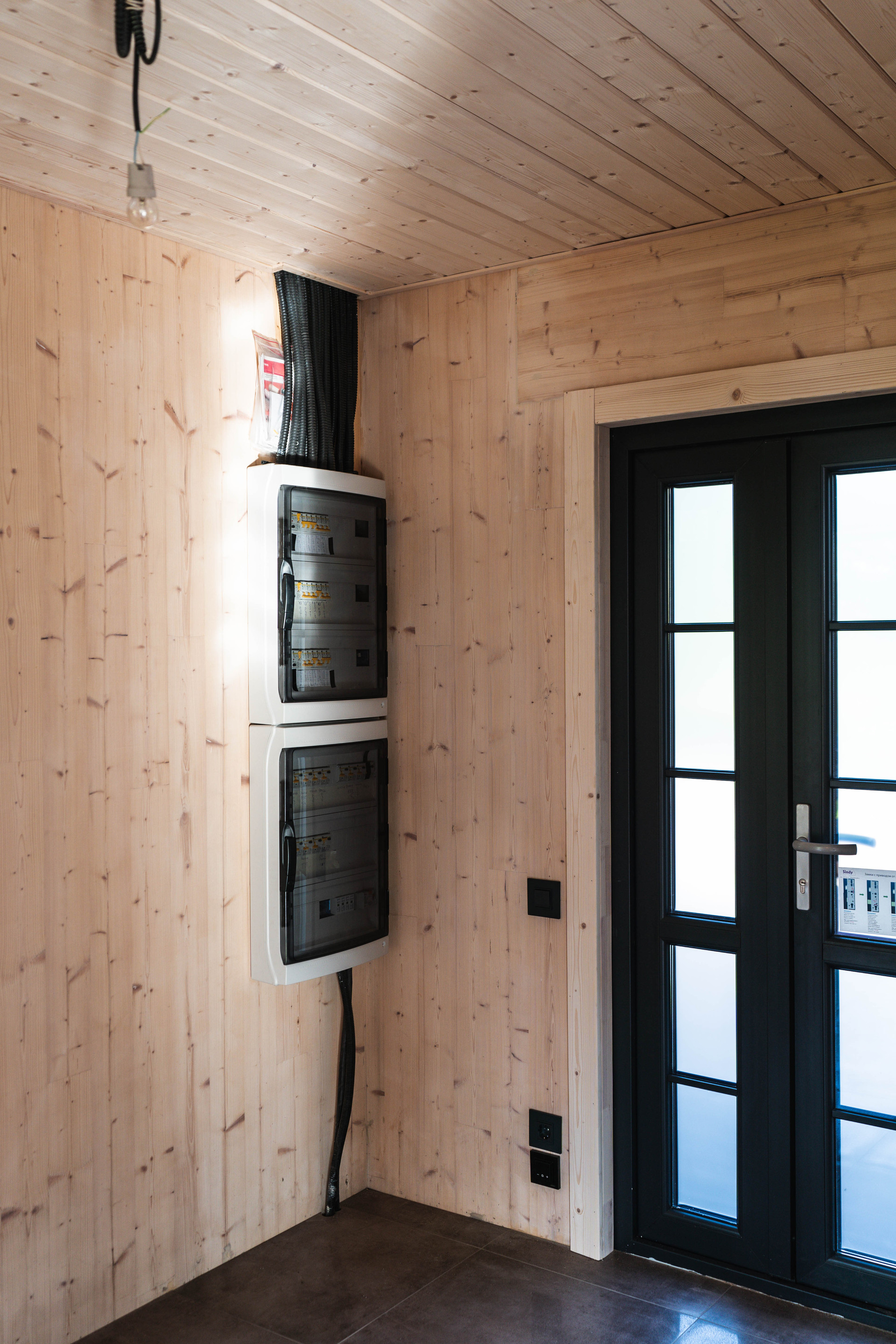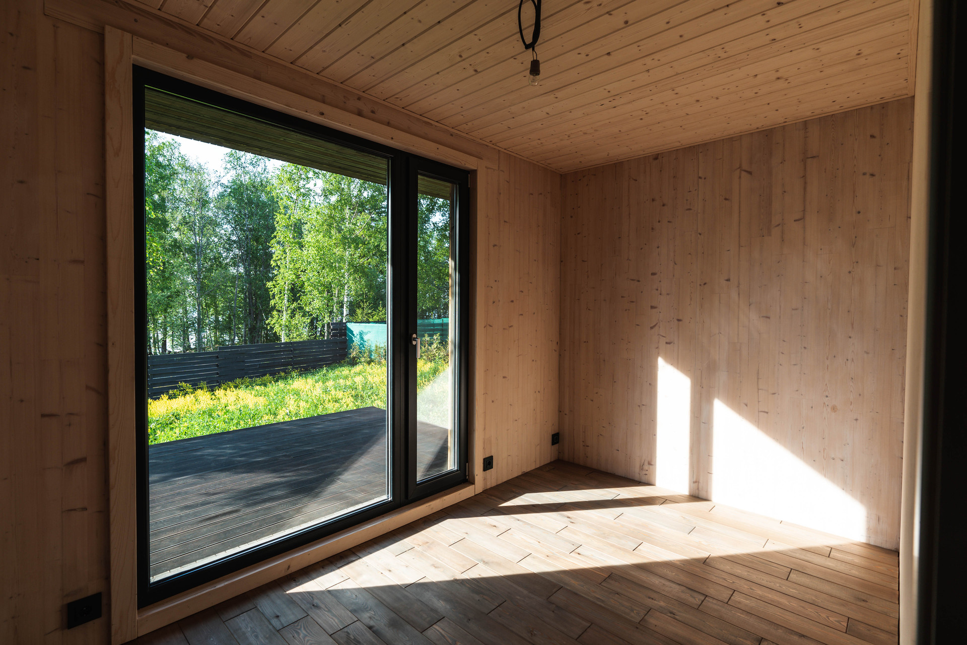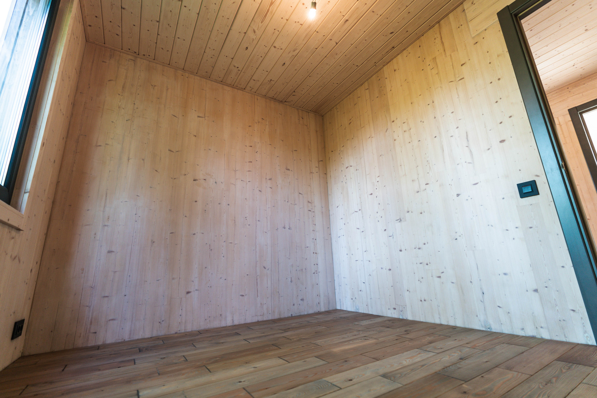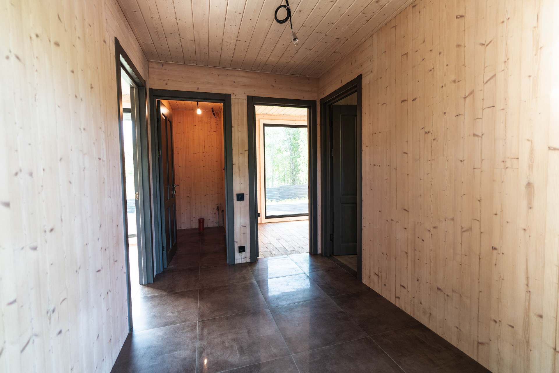 Внутренняя отделка - шлифованная CLT панель, покрытая Vallticolor (финского производства). Качественный керамогранит в прихожей, кухне-гостинной, санузлах. Паркет из лиственницы с покрытием маслом в спальных комнатах. Двери из массива древесины.