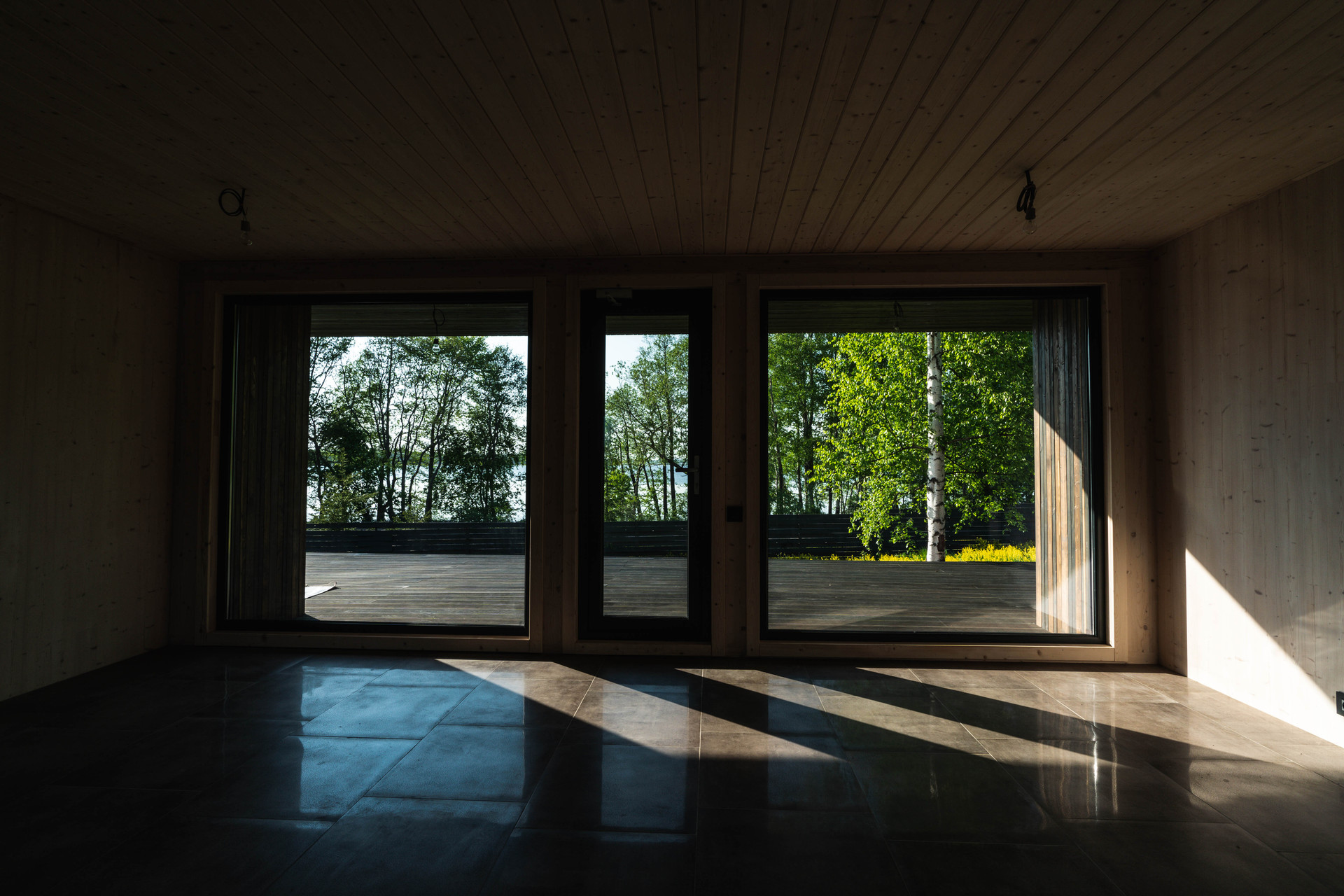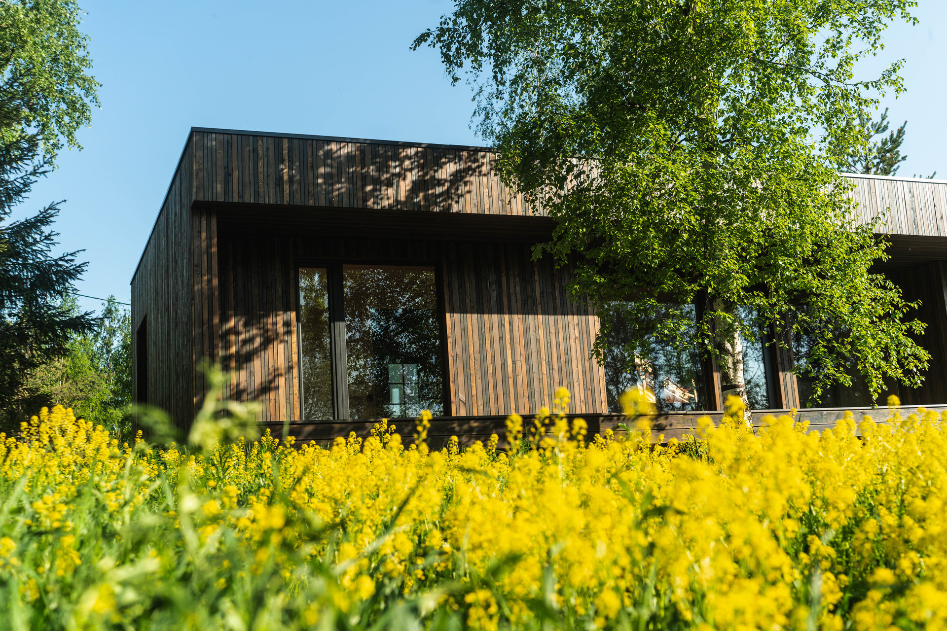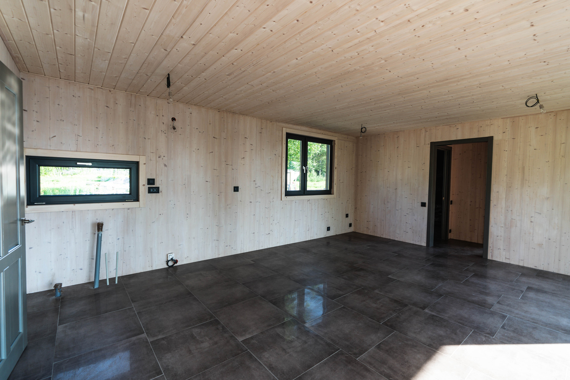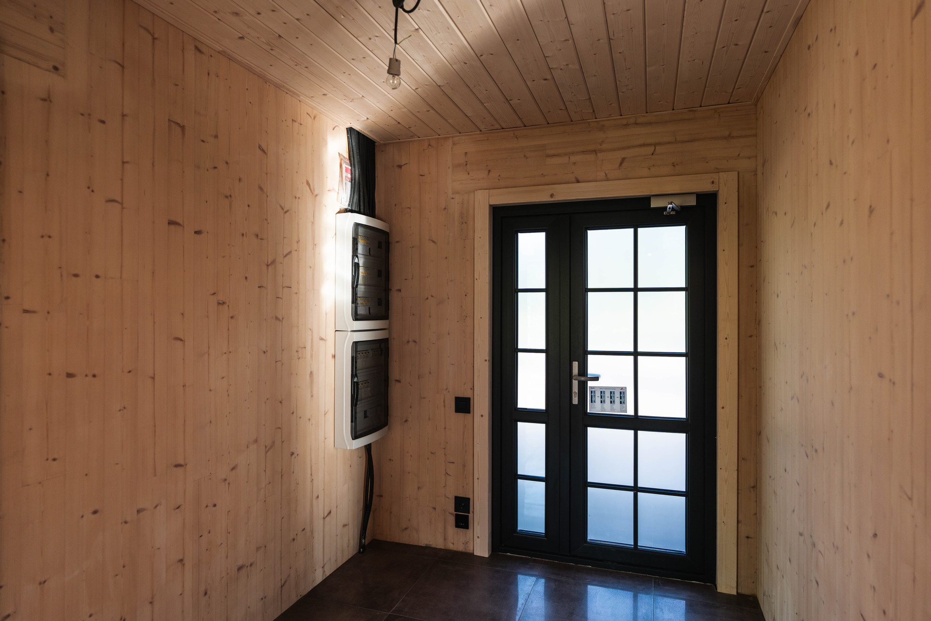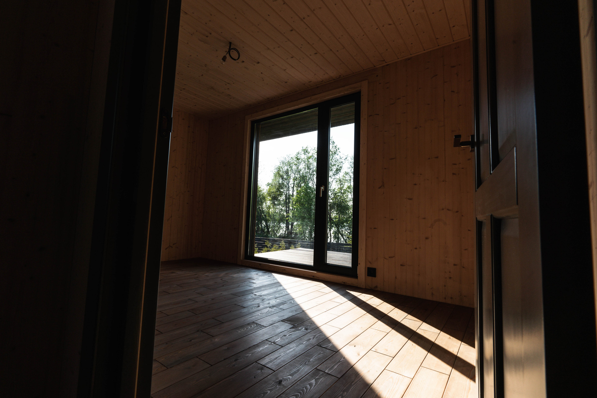 Внутренняя отделка - шлифованная CLT панель, покрытая Vallticolor (финского производства). Качественный керамогранит в прихожей, кухне-гостинной, санузлах. Паркет из лиственницы с покрытием маслом в спальных комнатах. Двери из массива древесины.