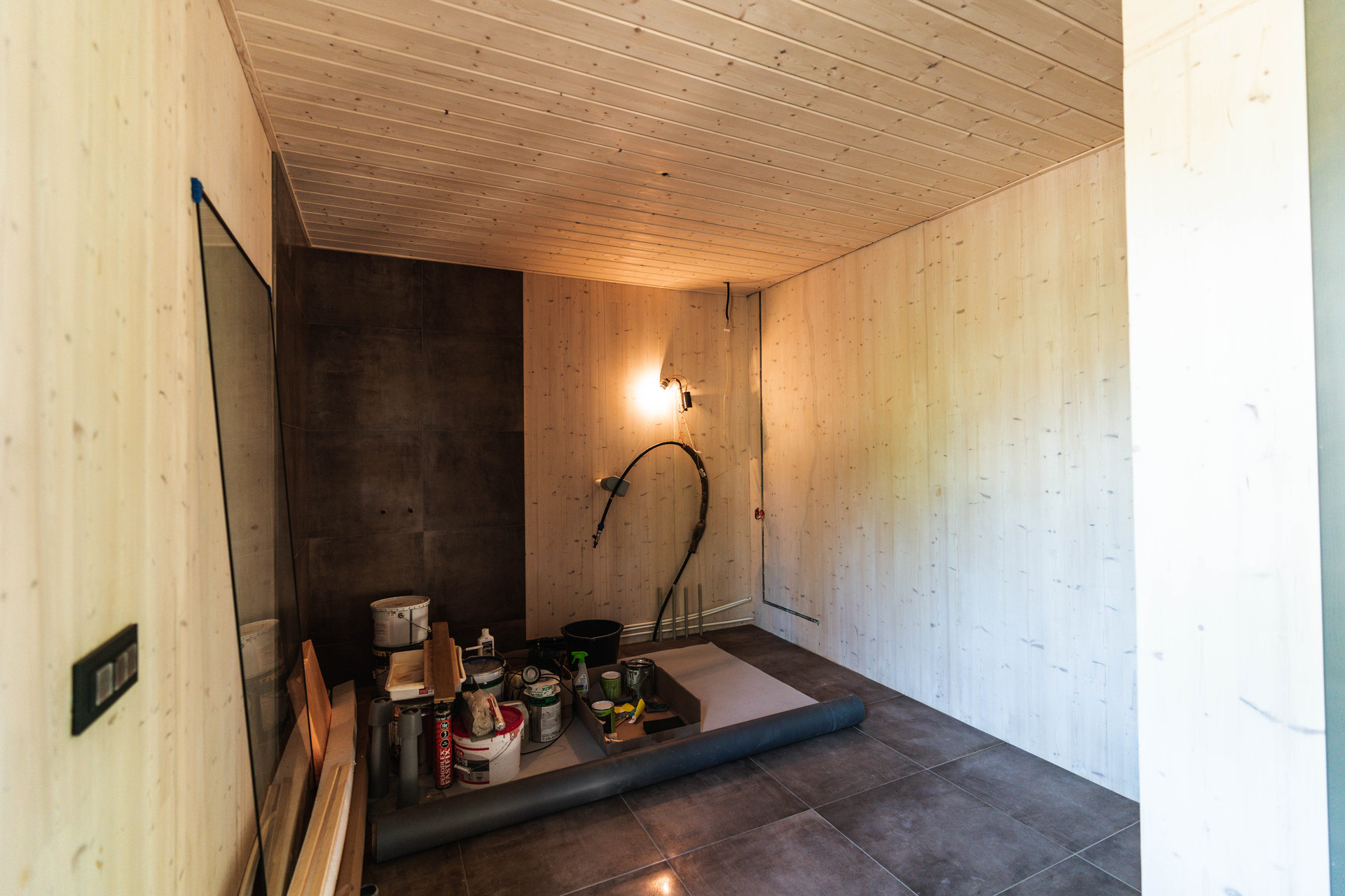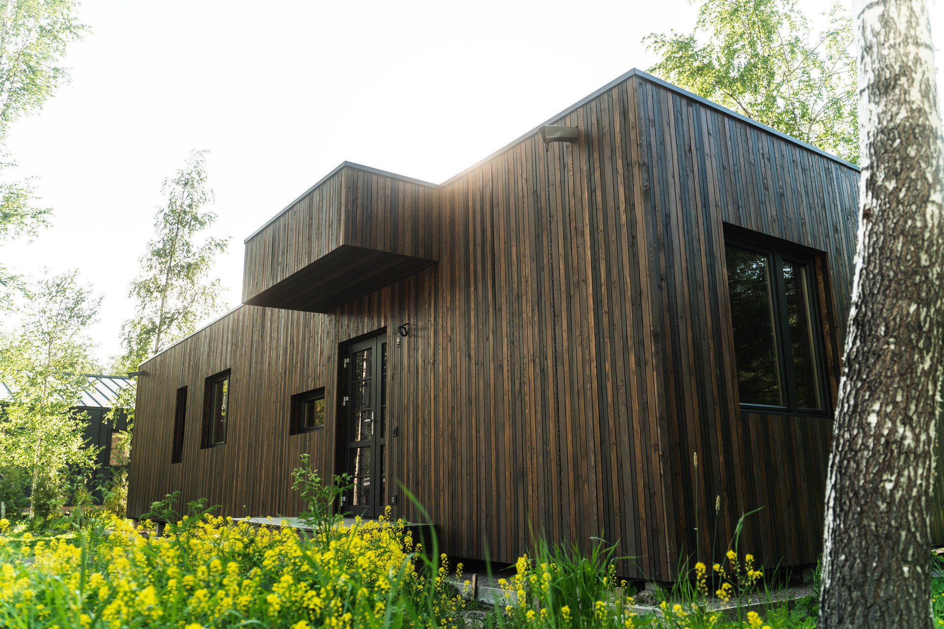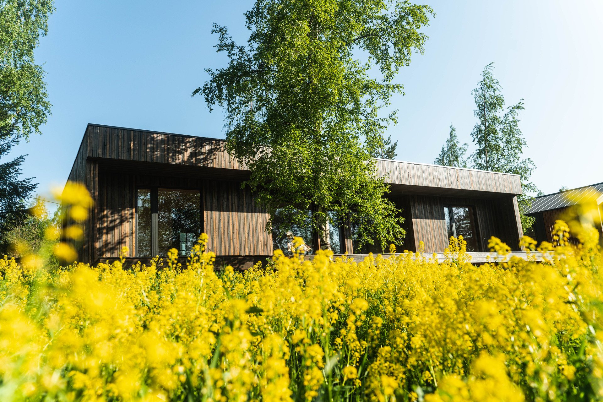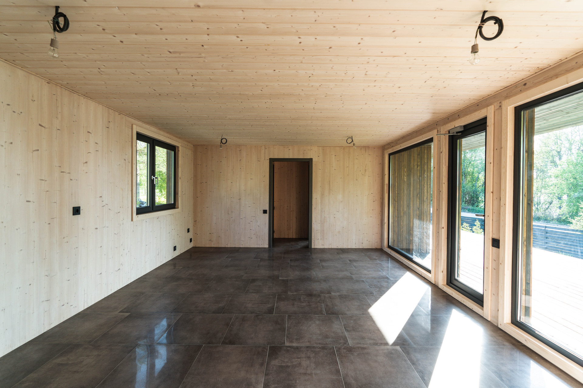 Внутренняя отделка - шлифованная CLT панель, покрытая Vallticolor (финского производства). Качественный керамогранит в прихожей, кухне-гостинной, санузлах. Паркет из лиственницы с покрытием маслом в спальных комнатах. Двери из массива древесины.