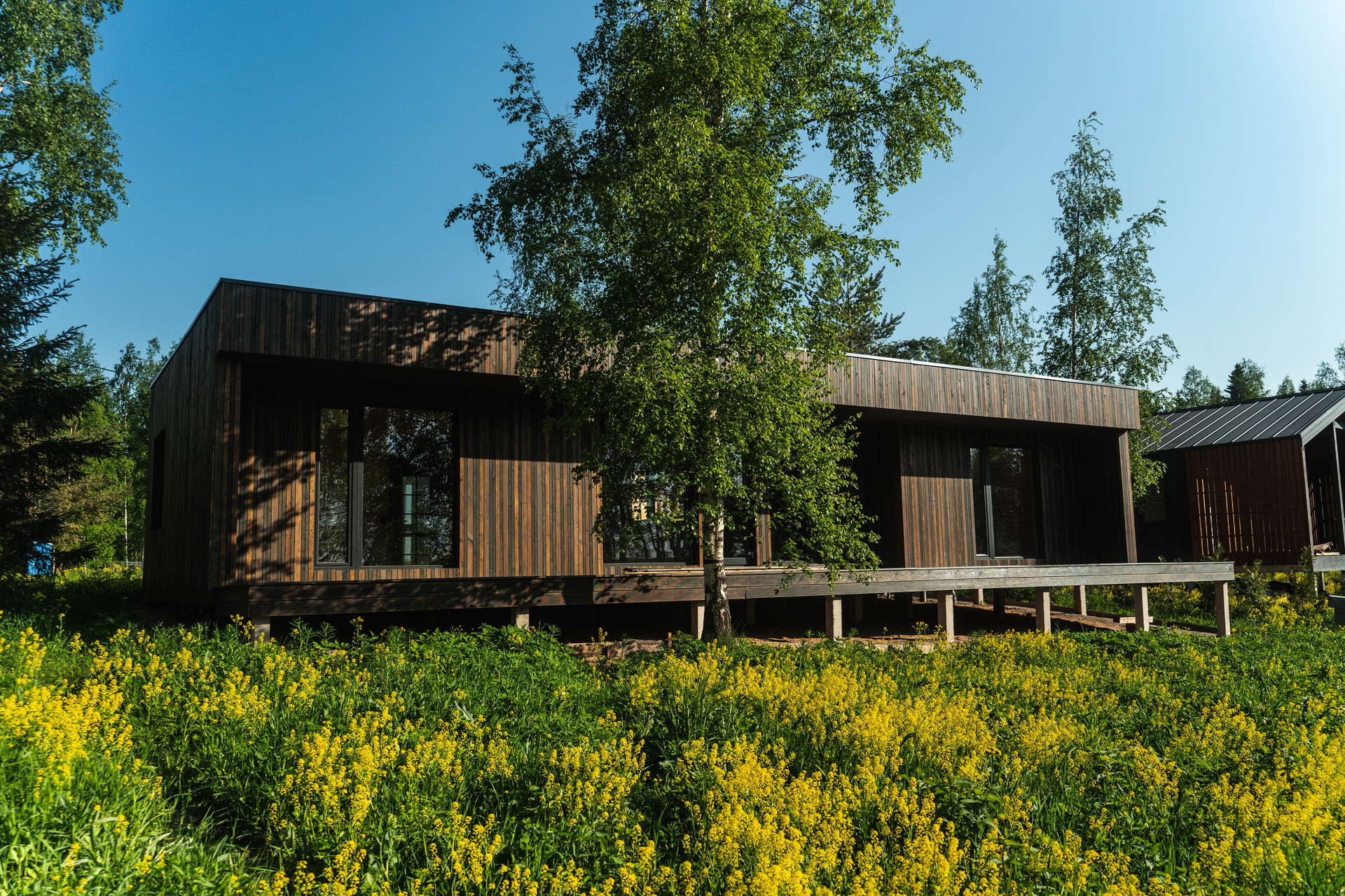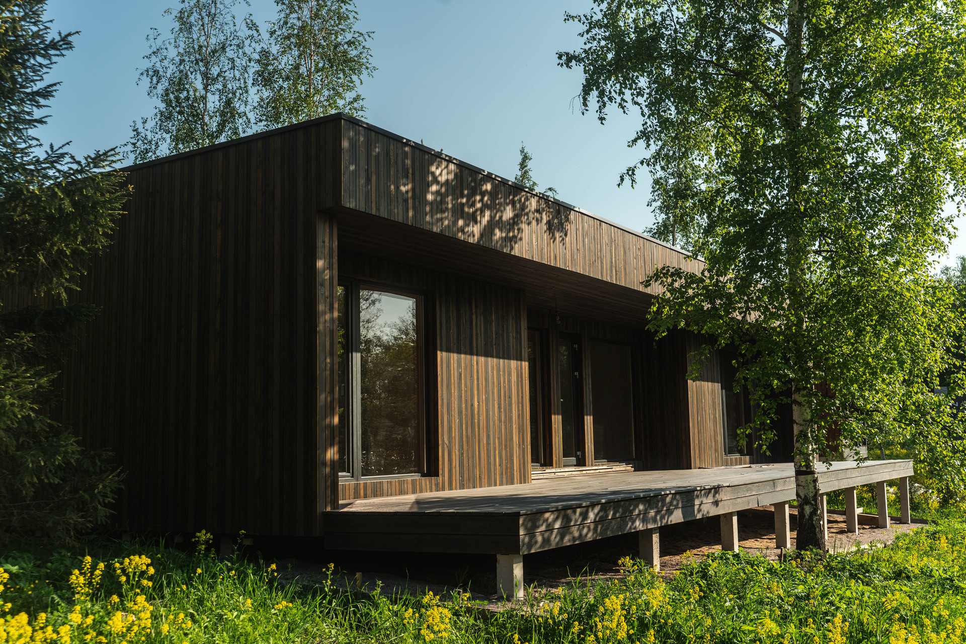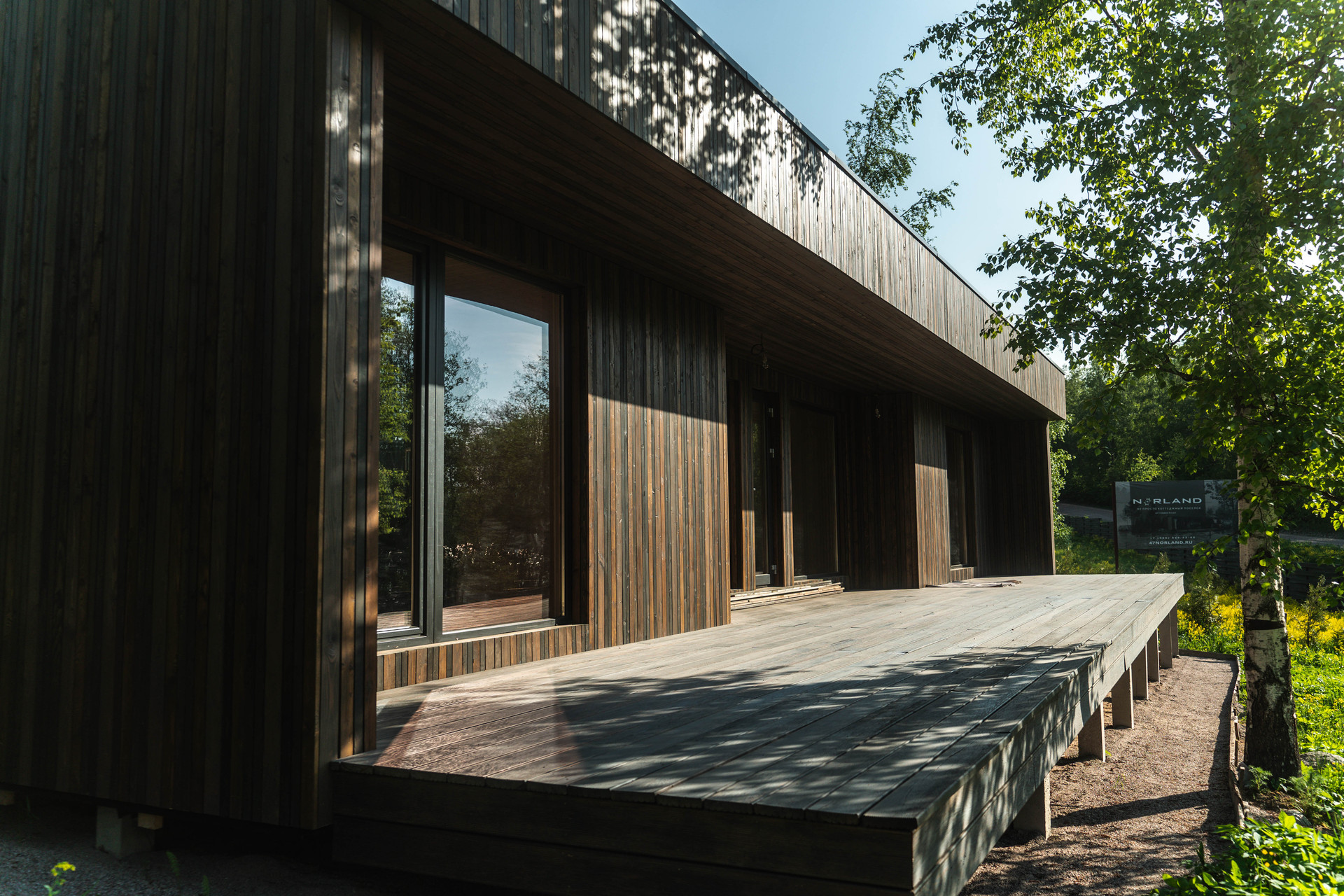 Терраса изготовлена из массива лиственницы "вельвет" с покрытием маслом Biofa.