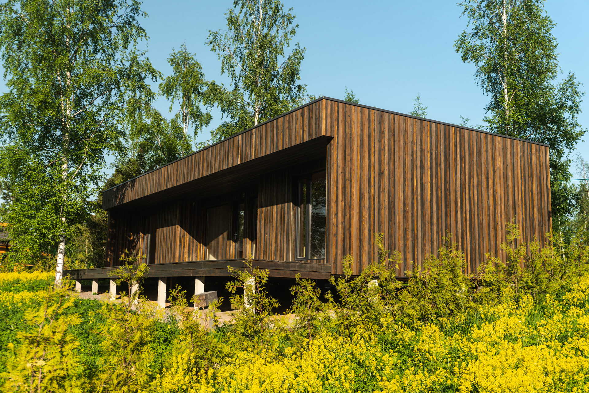 Дом установлен на бетонные забивные сваи. Изготовлен из передового и экологически-чистого материала - панелей CLT  (дома из такого материала редко встречаются в продаже на территории России). Основание - 200 мм экструдированной изоляции + 60мм плита CLT. Стены - 130 мм CLT + 60 мм Белтермо (изоляция из древесины). Мягкая наплавляемая кровля на деревянных двутавровых балках с утеплением 200 мм.