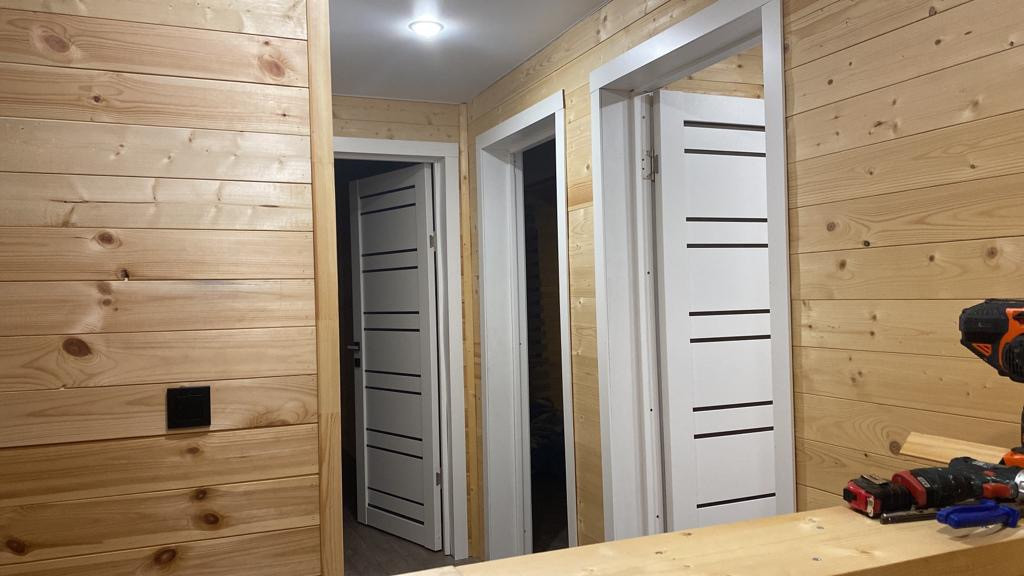 Установлены натяжные потолки везде.