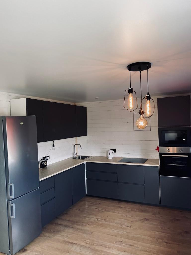 В доме установлена кухня ИКЕА со всей встроенной техникой. Все новое. В доме очень грамотно зонирован свет и розетки. К слову выключателей в доме 17 шт, розеток порядка 25. Хозяйки оценят)