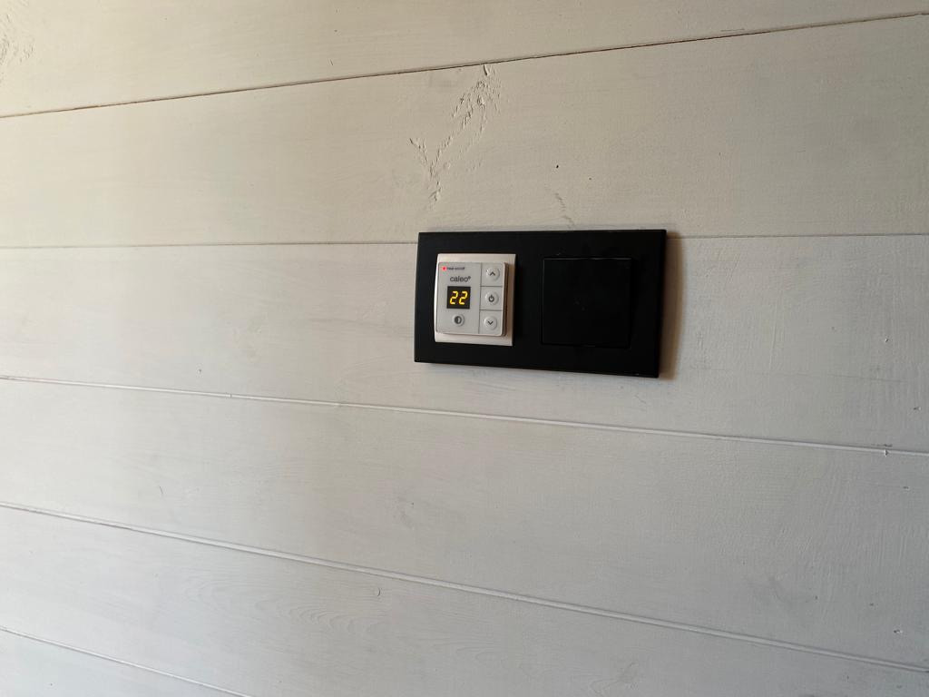 Отопление посредством энергоэффективных обогревателей с датчиками температуры в каждом помещении + тёплые полы первого этажа. Дом очень тёплый.