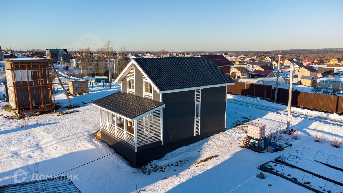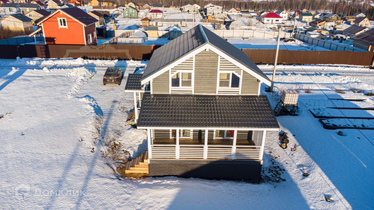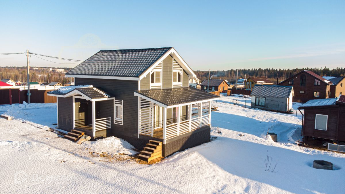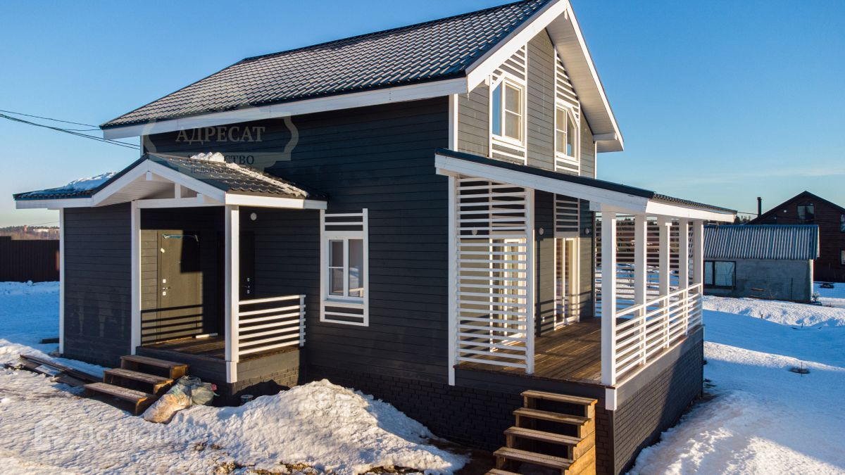 Двух этажный жилой дом 124 кв.м., (10.5х8.5м) стоит на забивных ж/б сваях, материал стен - каркас (50х150мм перекрытия и стропила 50х200мм, утепление 200мм по всему контору). Установлены двухкамерные стеклопакеты. Крыша - металлочерепица 0.45мм.