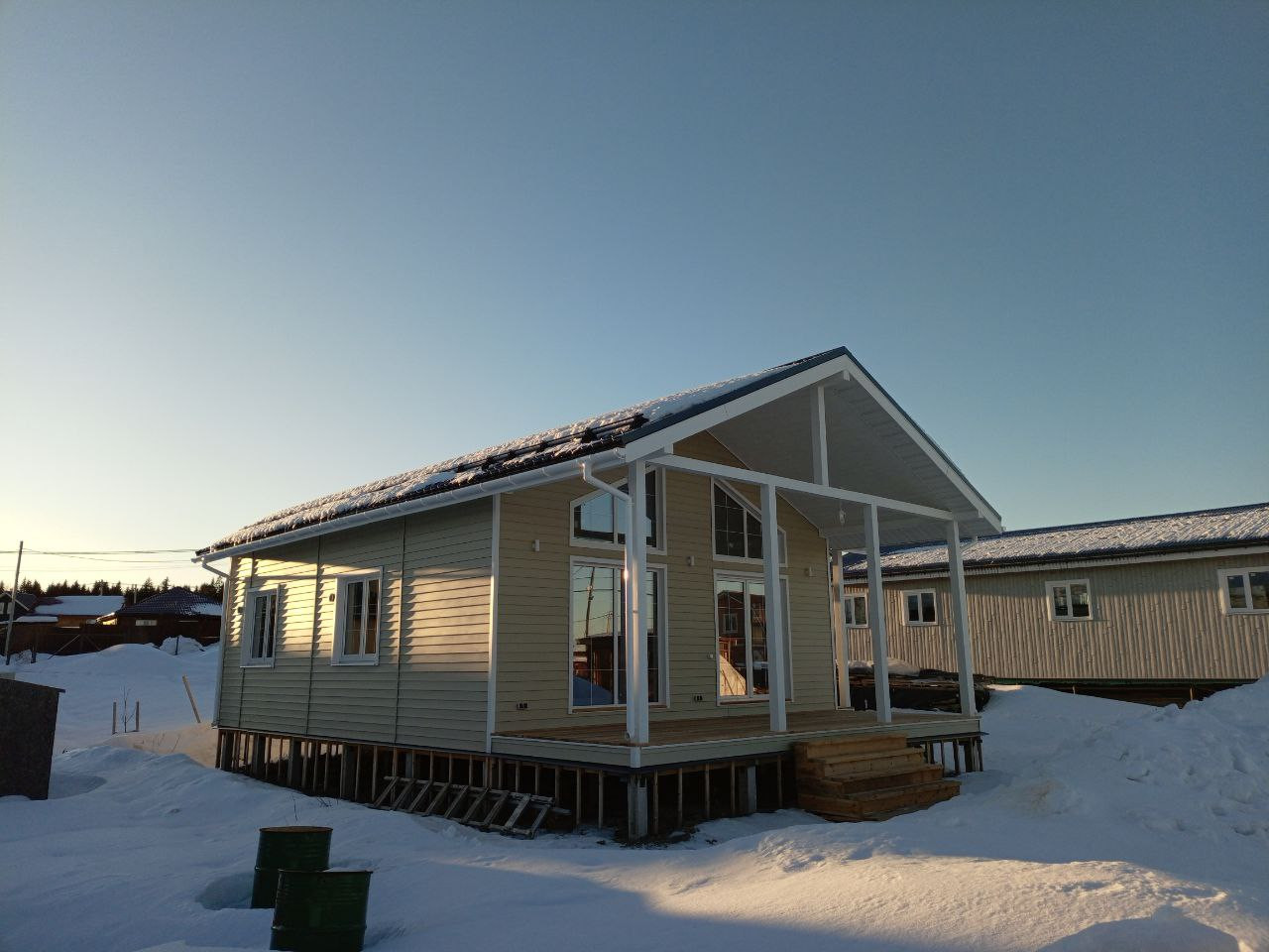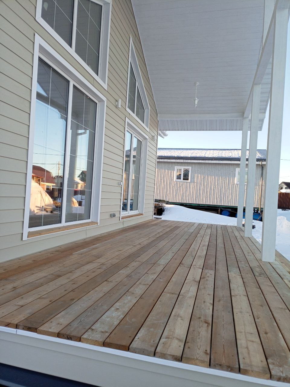 *Терасса и крыльцо дома выполнены из палубной доски (лиственница) и покрыта маслом Tikkurila Valtti Terrace.