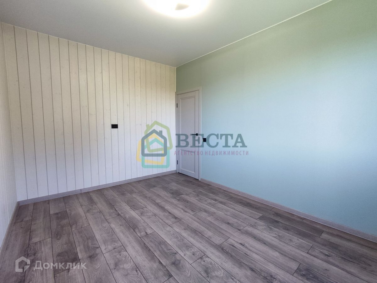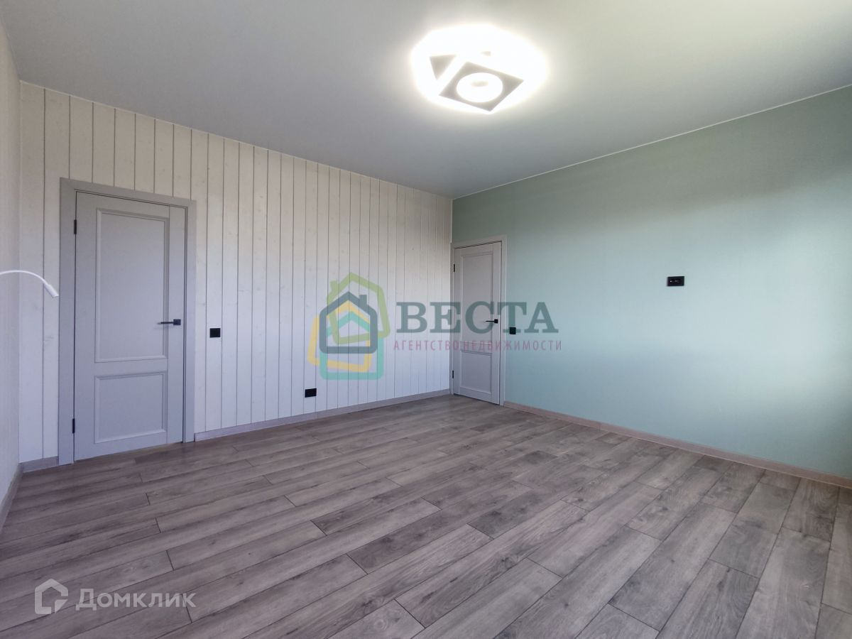 Внутренняя отделка скомпонована из дерева и обоев, пол ламинат, потолок натяжной, в СУ стены/пол плитка/керамогранит.