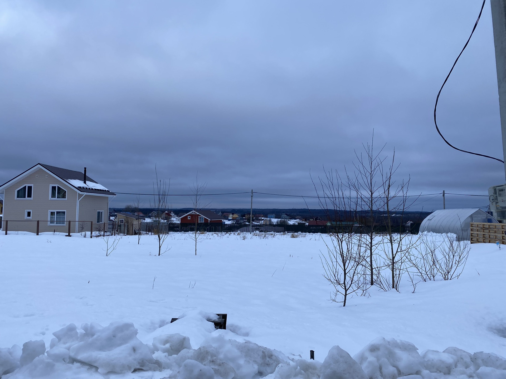 Участок ровный, с небольшим уклоном. Электричество 15кв от Ленэнерго на границе участка . Участок находится на верху холма, сухой, с хорошим видом на лес. На ближайшие годы запланирована газификация поселка.