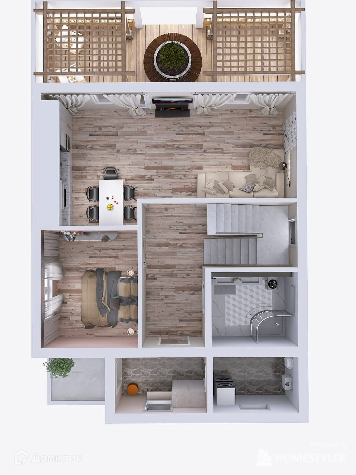 Изюминкой этого коттеджа является функциональная планировка с просторной кухней-гостиной, панорамным остеклением и выходом на большую террасу!