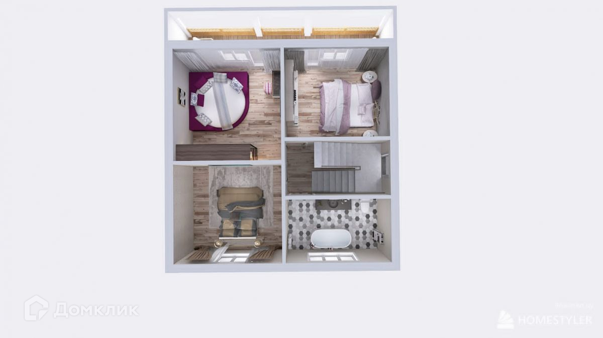 Второй этаж: коридор, 3 спальные комнаты, санузел, балкон.